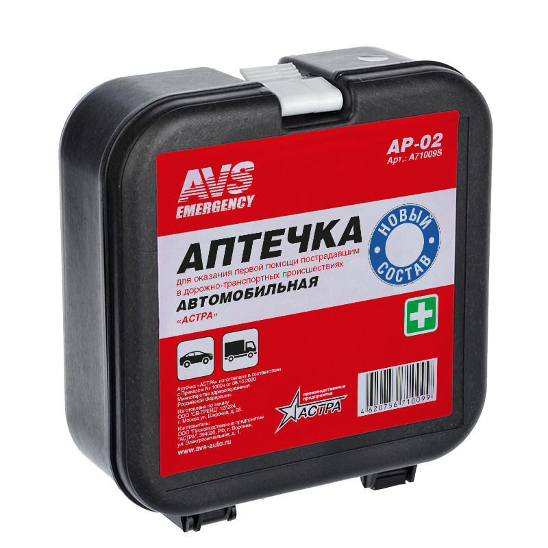 Аптечка AVS пластиковый футляр AP-02 Новый состав