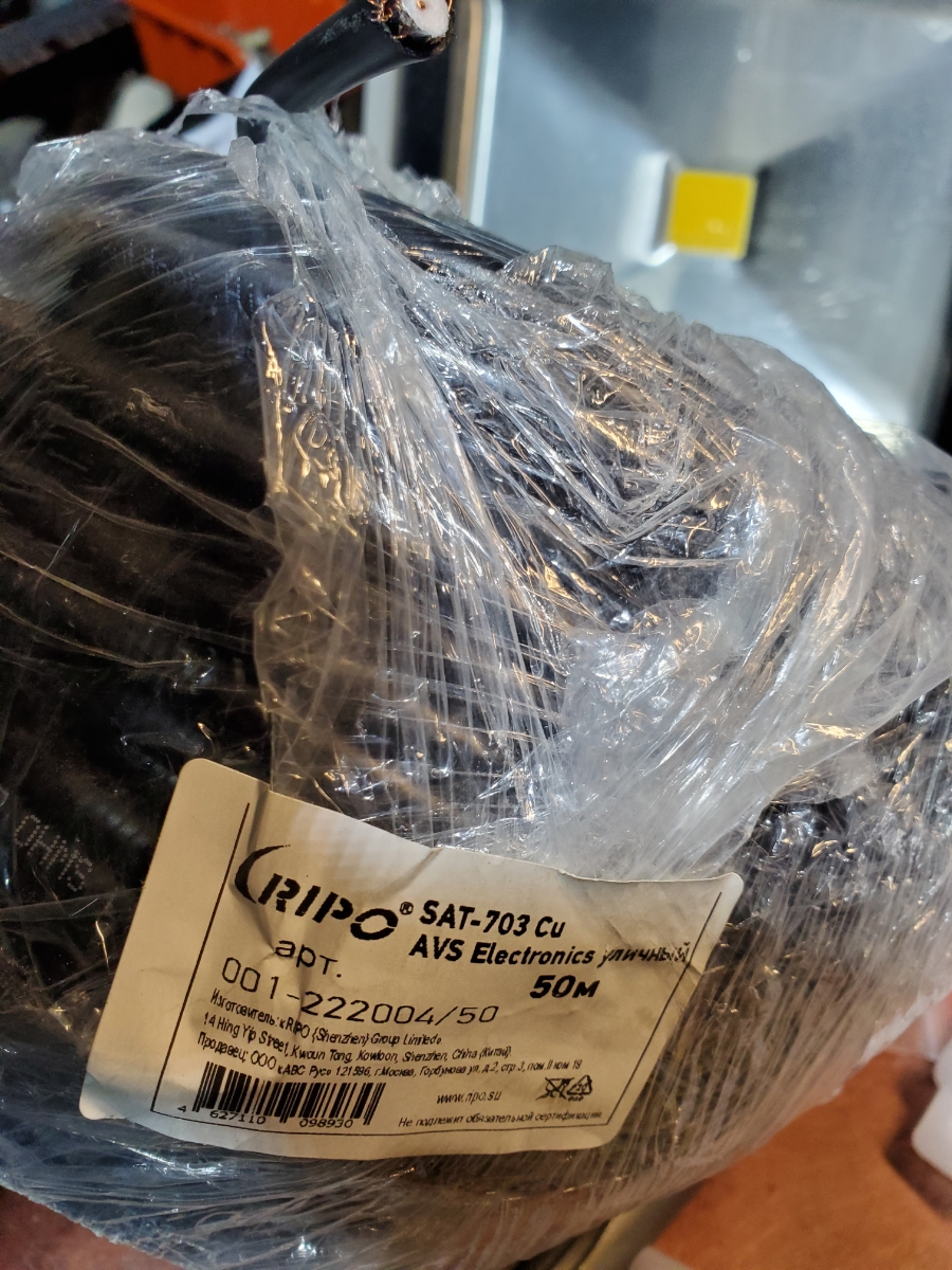 Коаксиальный телевизионный кабель SAT-703 Cu Or AVS Electronics 50 метров 001-222008/50