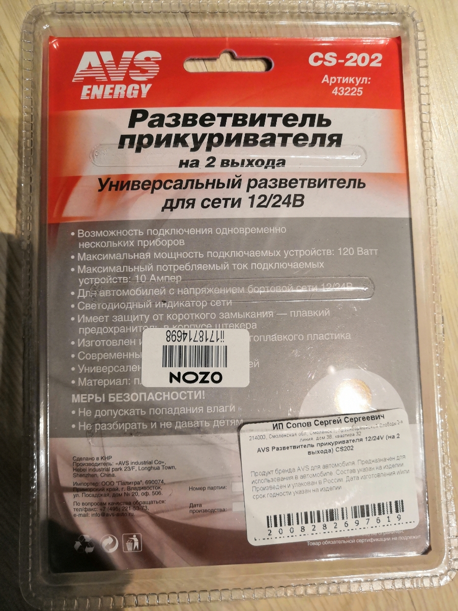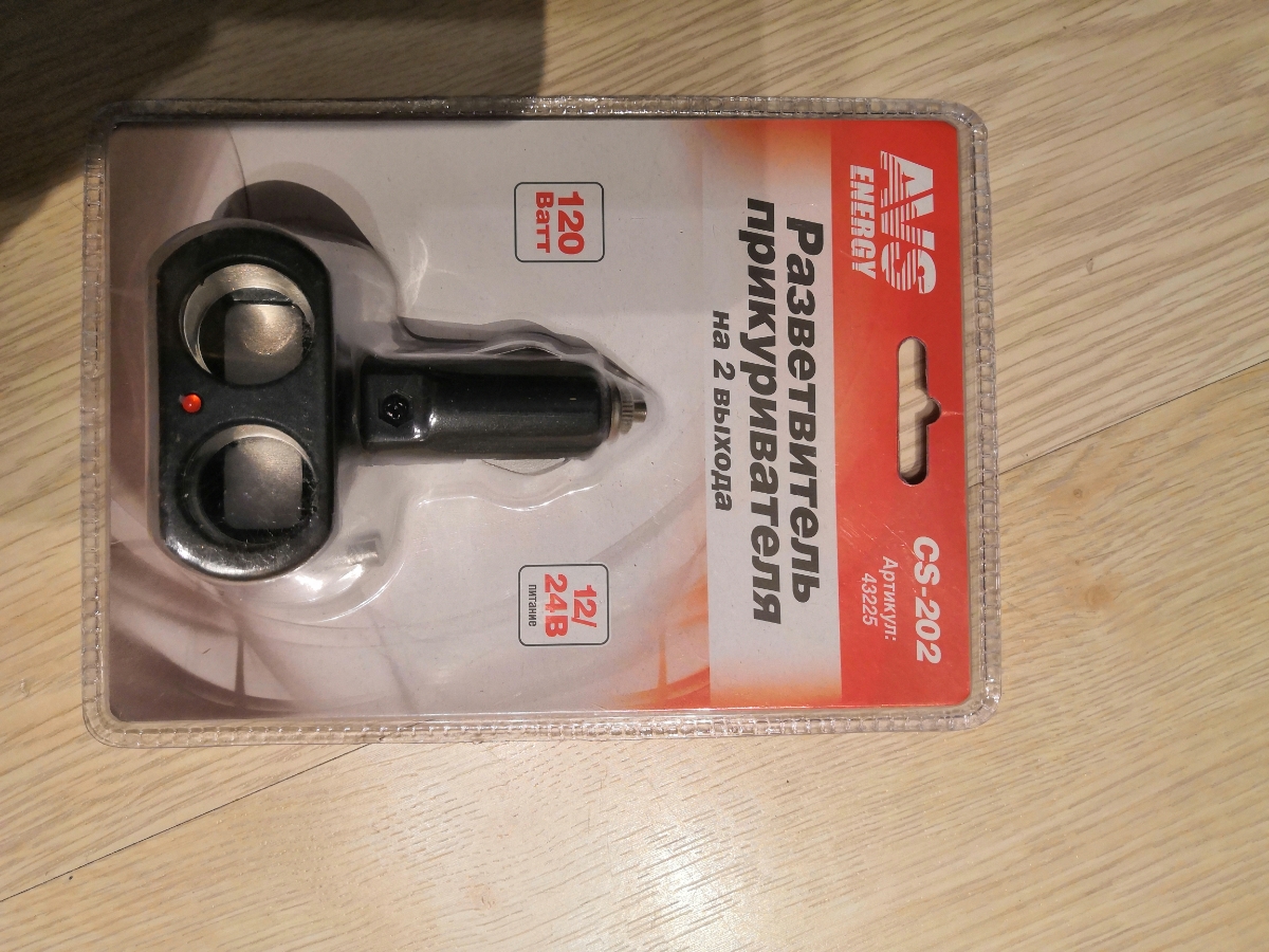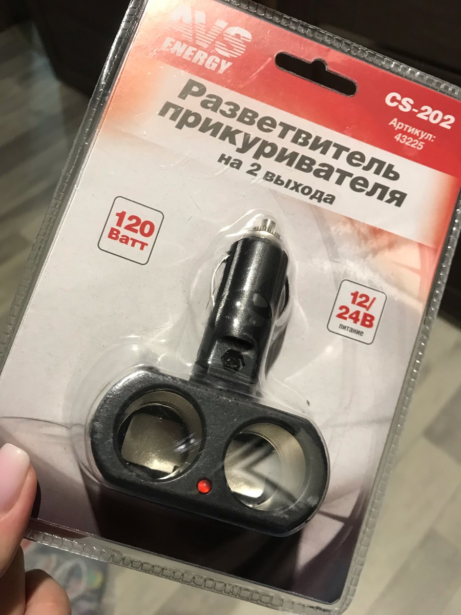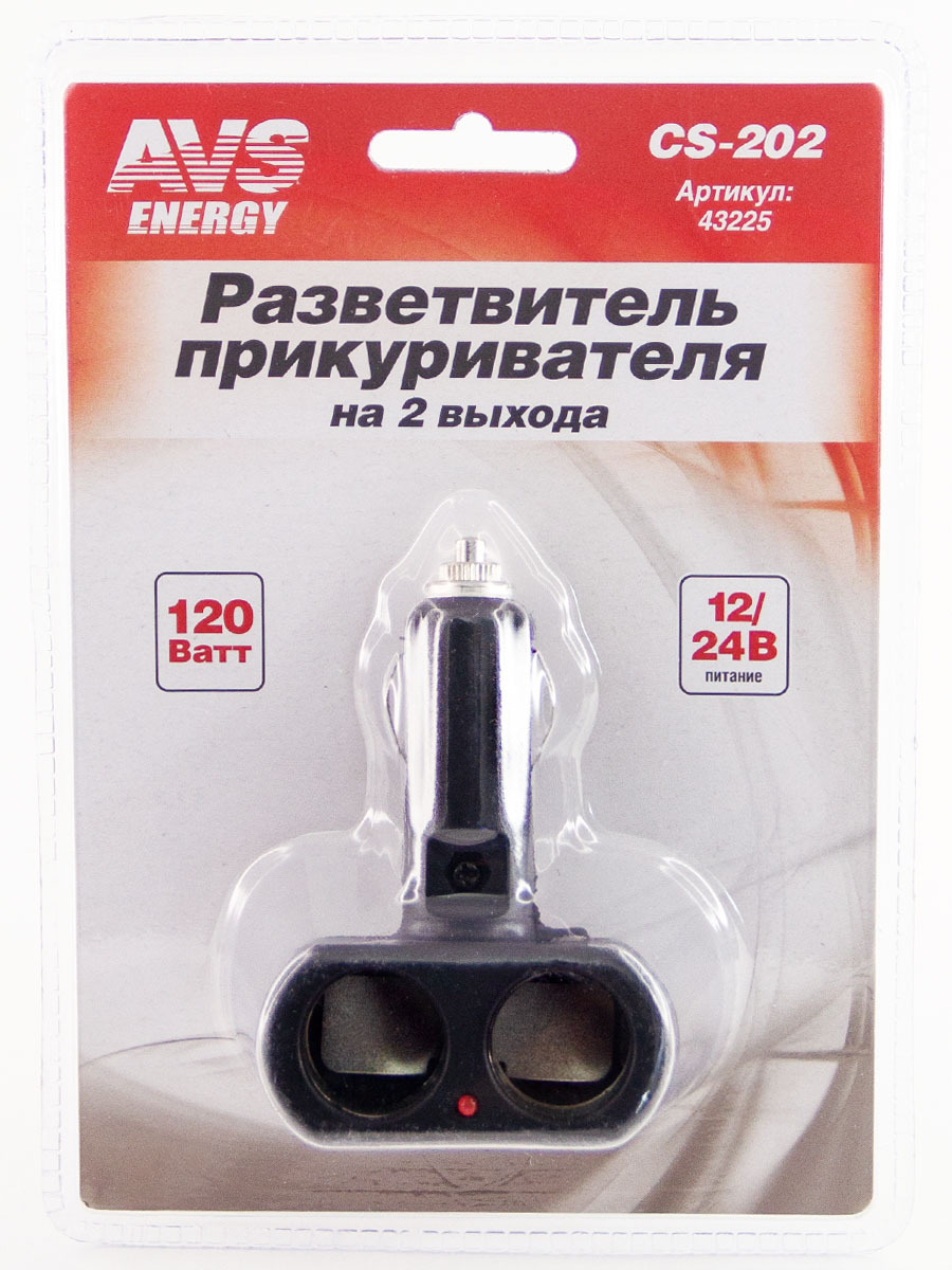 Разветвитель прикуривателя на 2 выхода 12/24V AVS CS202 43225