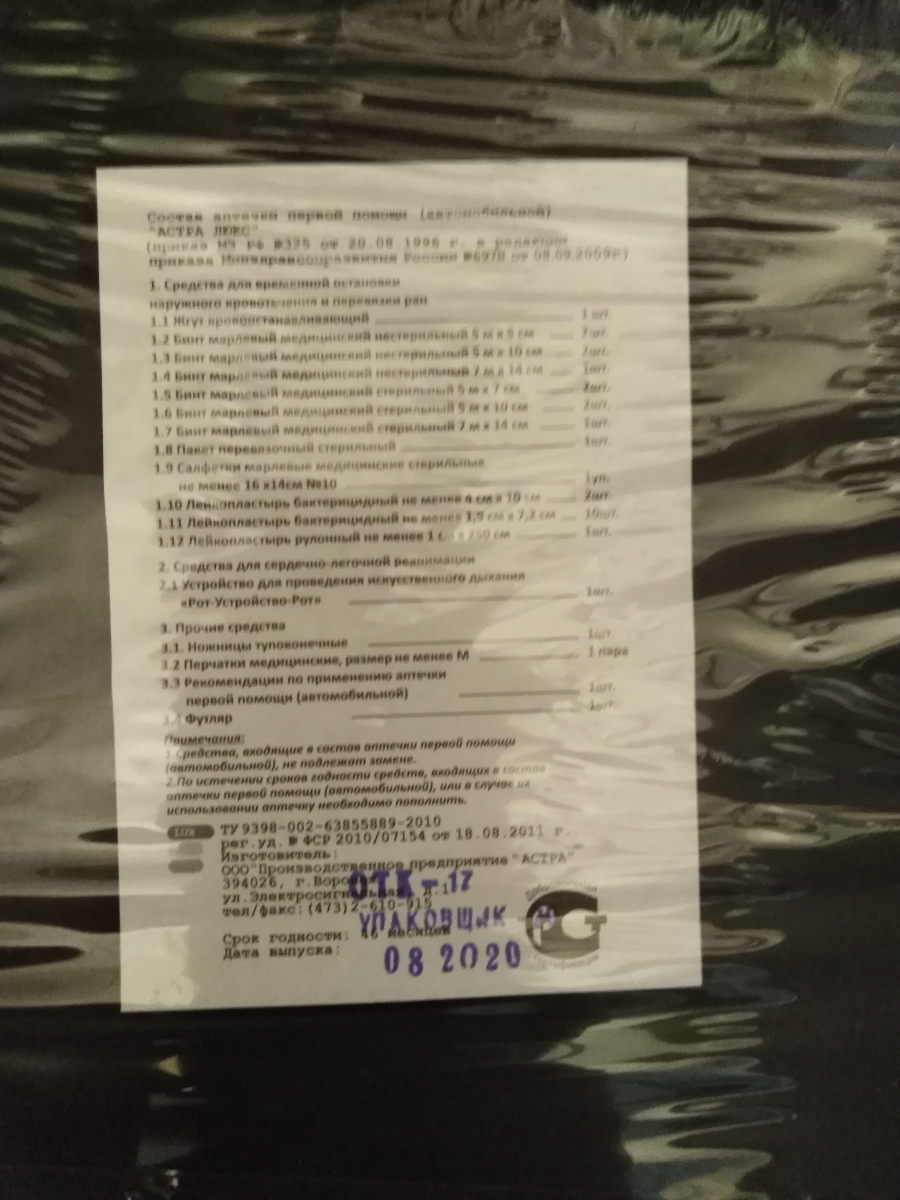 Аптечка автомобильная (по приказу) AVS AP-01