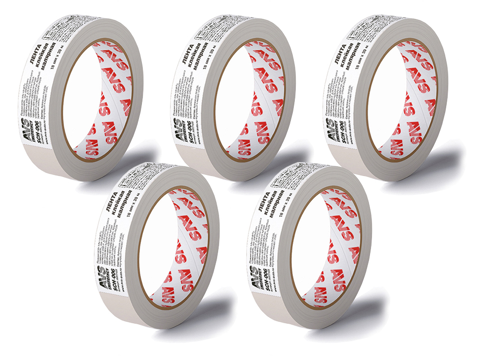 Клейкая лента, Малярная лента AVS SCH-0. 20 м, 5 шт