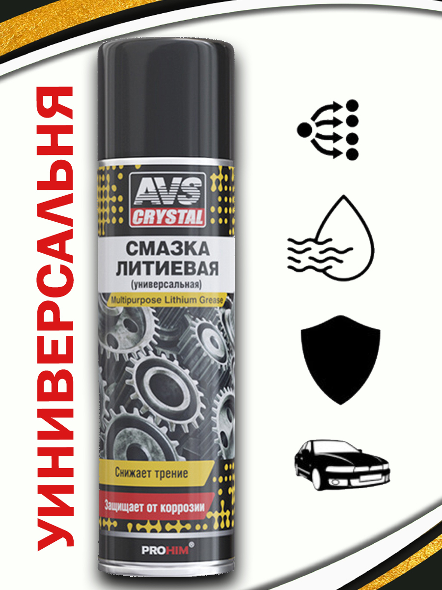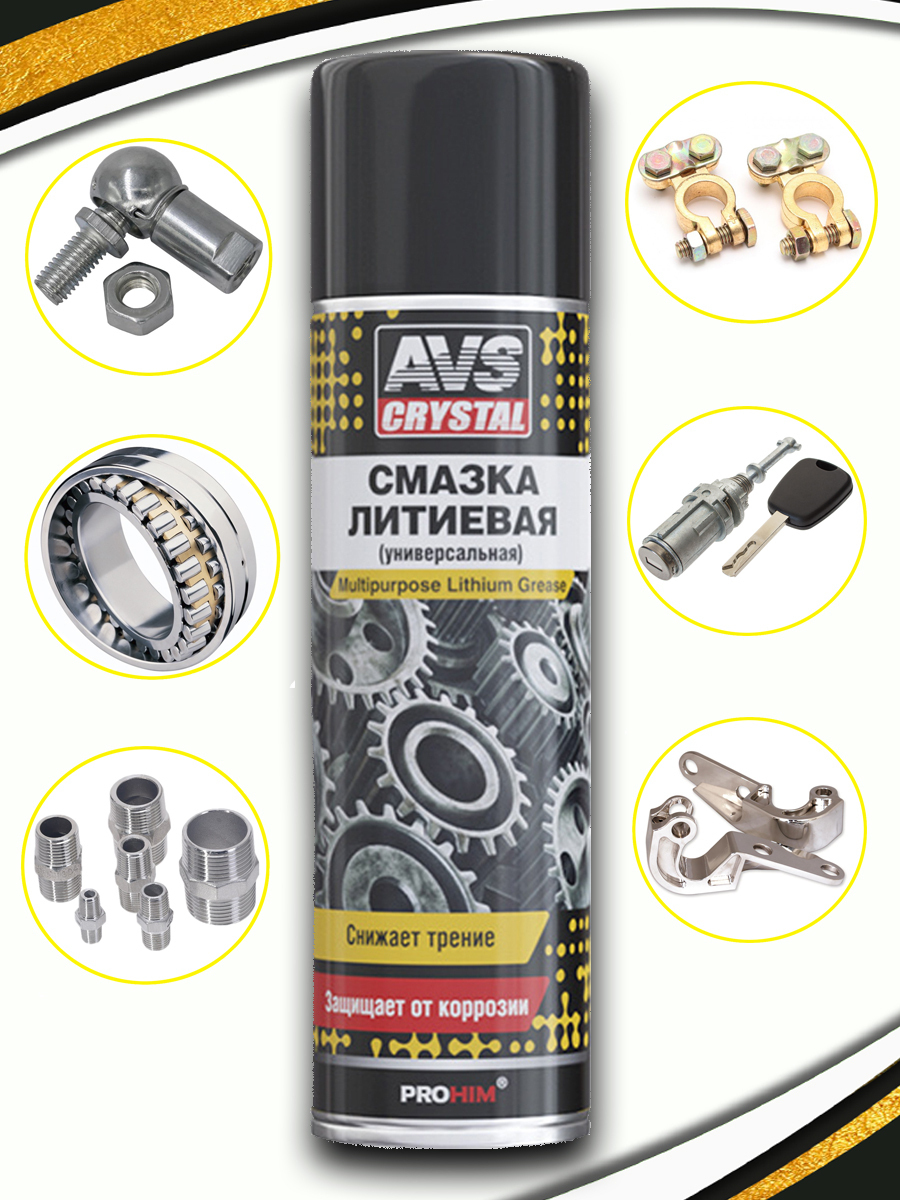 Литиевая смазка спрей (универсальная водостойкая, аэрозоль), 0,335л. AVS AVK-104. A78078S