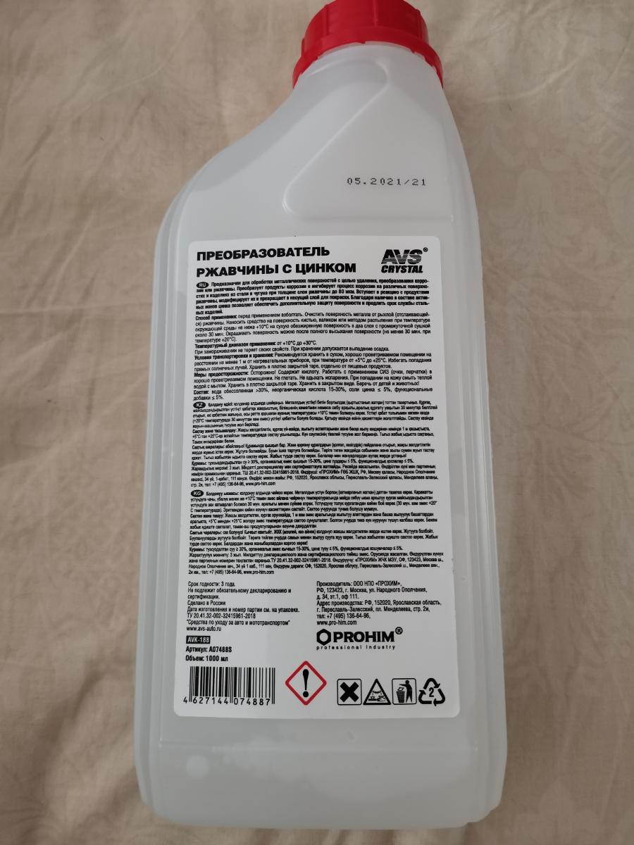 Преобразователь ржавчины с цинком "ЦИНКАЧ" 100 мл AVS AVK-757