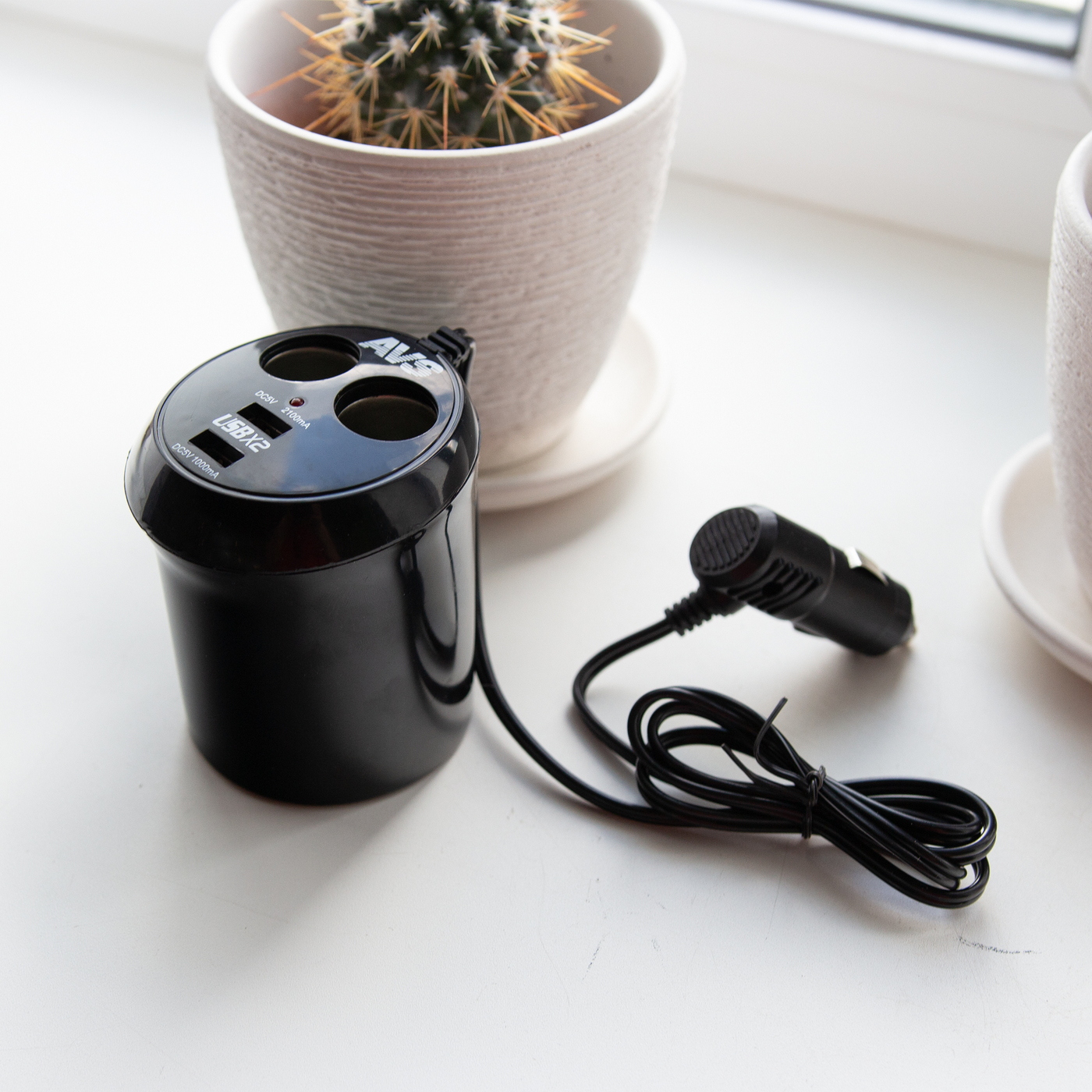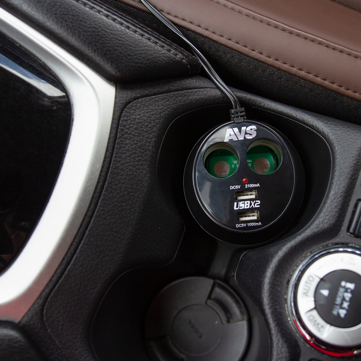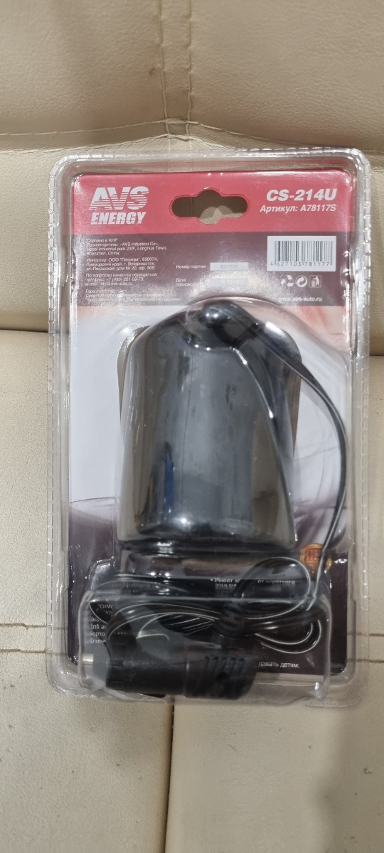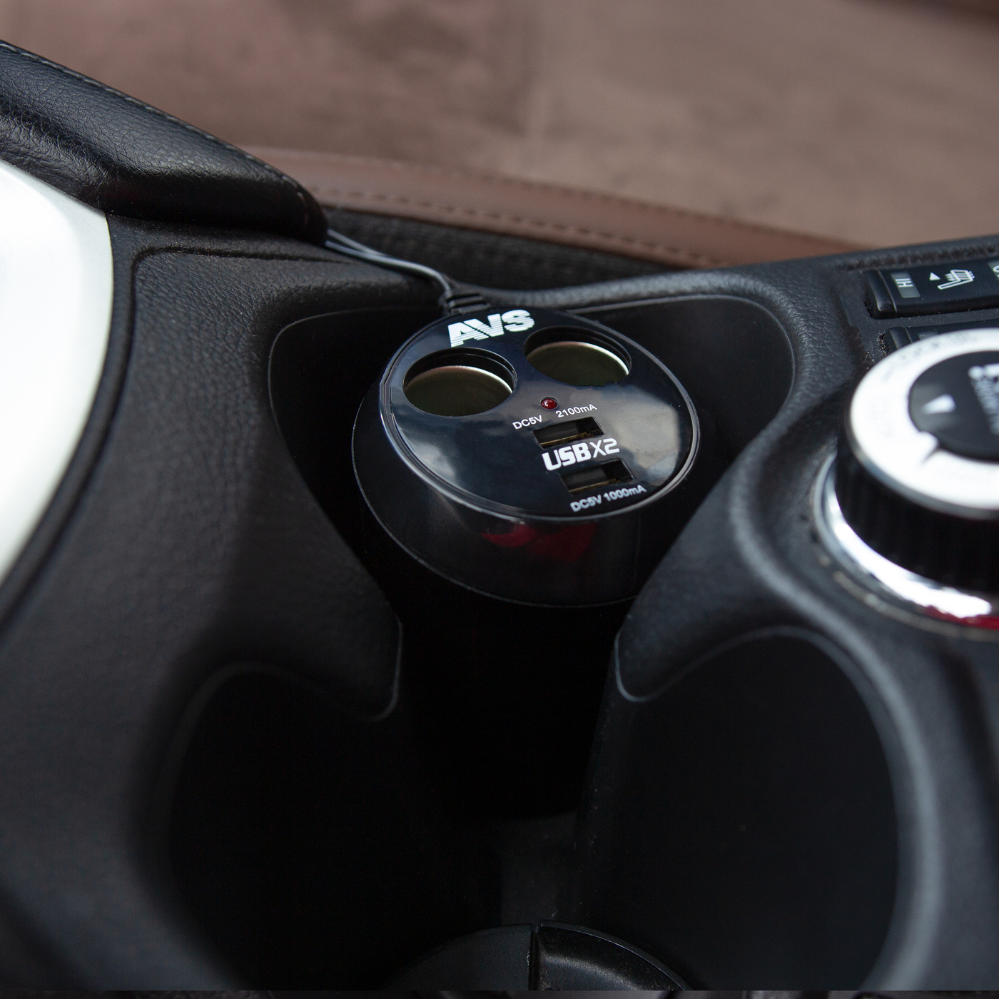 Разветвитель прикуривателя в подстаканник на 2 выхода + USB 12/24V AVS CS214U A78117S