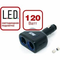 Разветвитель прикуривателя AVS "CS301", со светодиодной подсветкой, 3 выхода, 12/24В