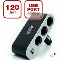 Разветвитель прикуривателя AVS CS312U 12/24 (на 3 выхода+USB) (43265)