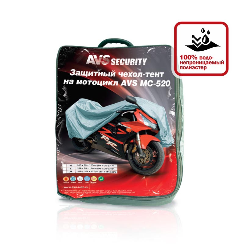 Защитный чехол-тент на мотоцикл "AVS", 246 см х 104 см х 127 см. Размер XL