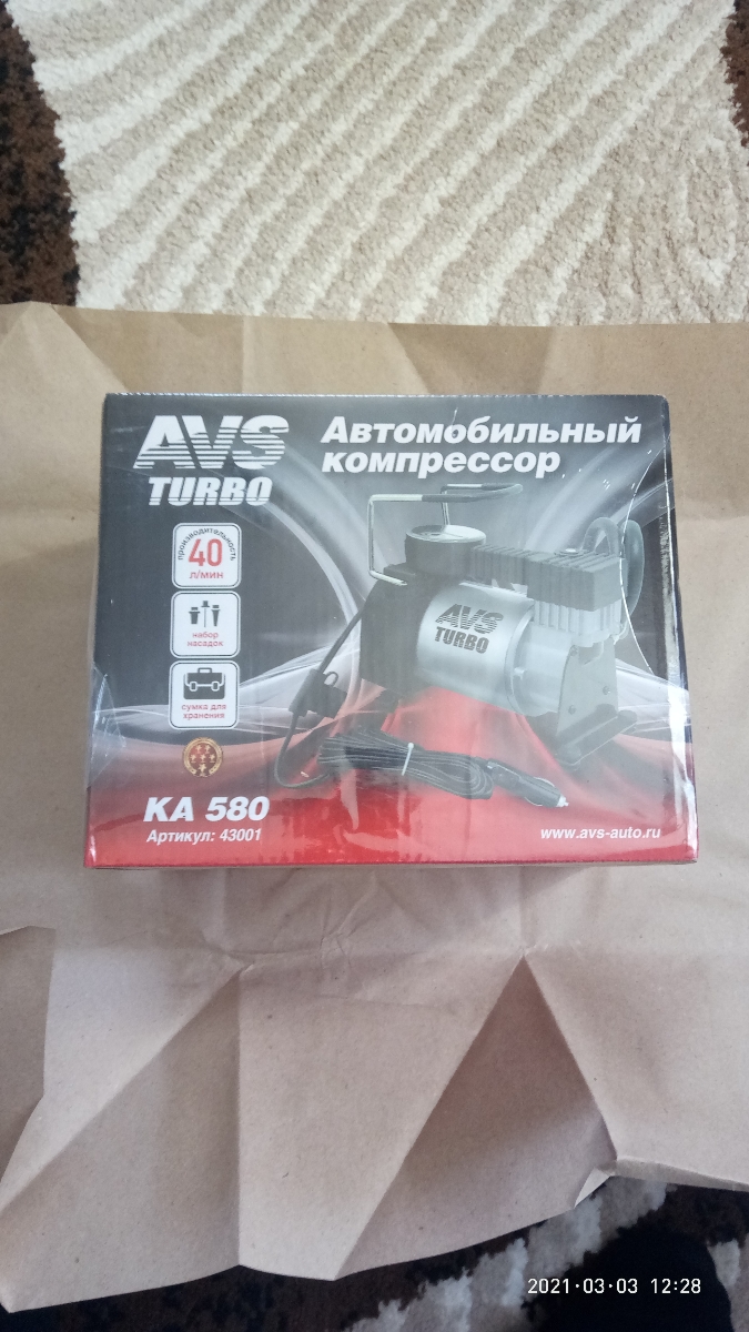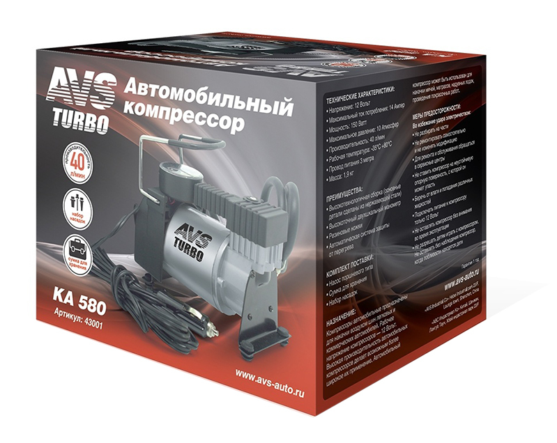 Компрессор автомобильный AVS KA580 40 л/мин, 10 Атм 12V, 43001, 1 шт