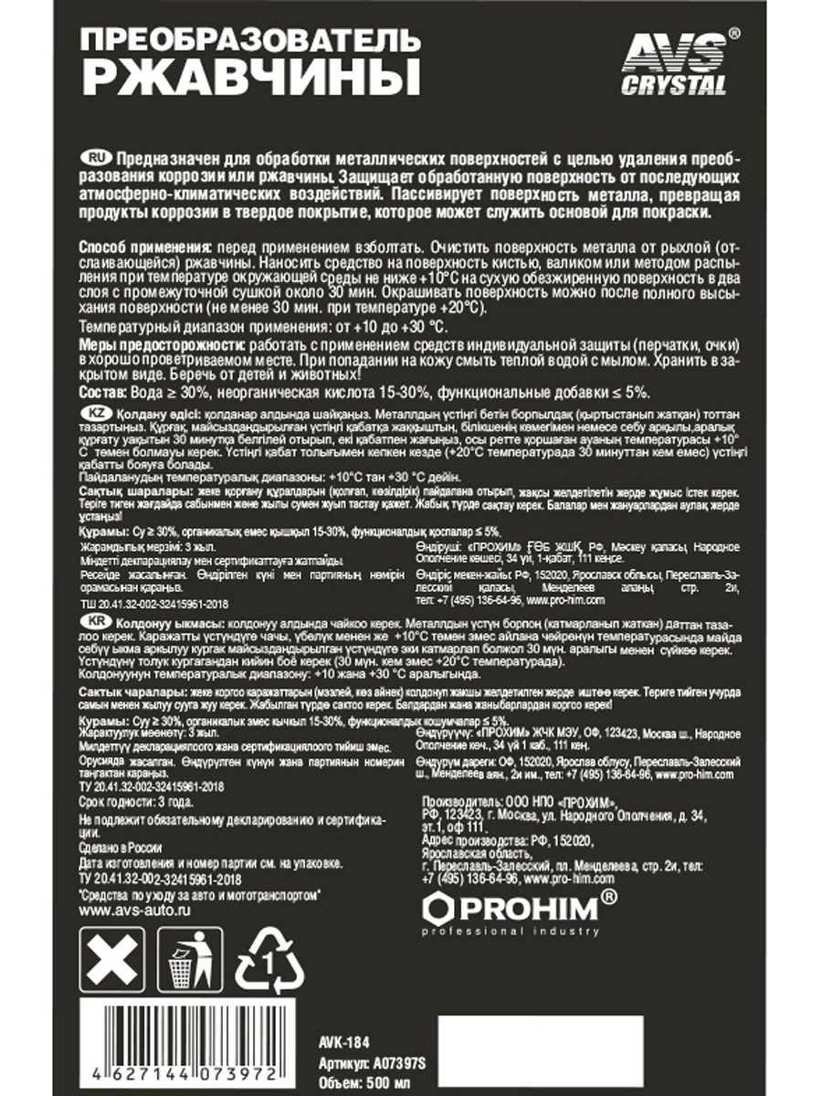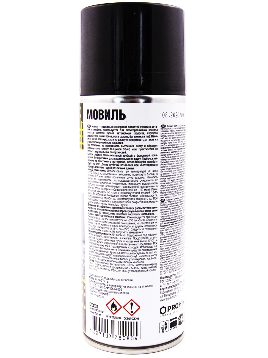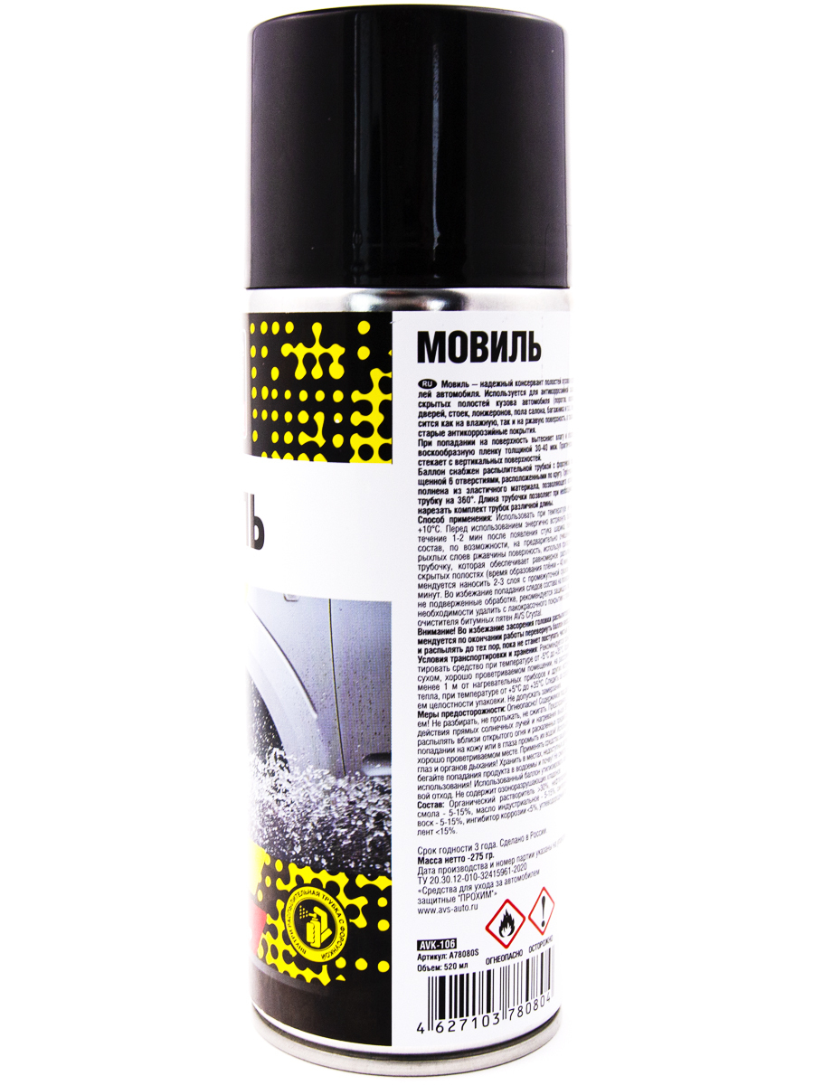 Мовиль "Консервирующий состав" AVS / антикор для скрытых полостей (аэрозоль) 520 мл. AVK-106 A78080S