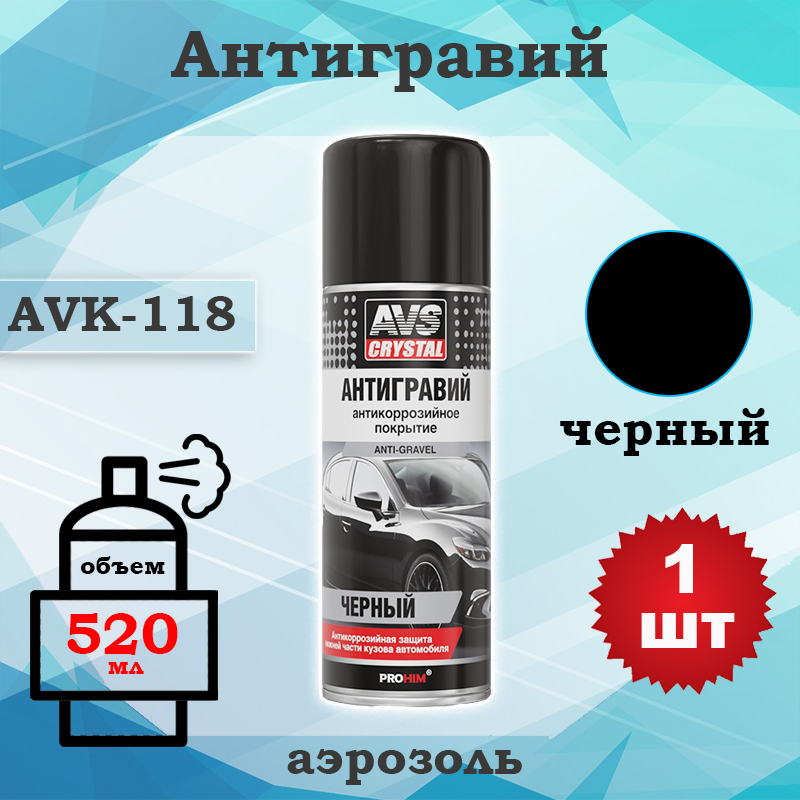 Антигравий "AVS" AVK-118, 520 мл, аэрозоль, черный, A78229S, 1 шт