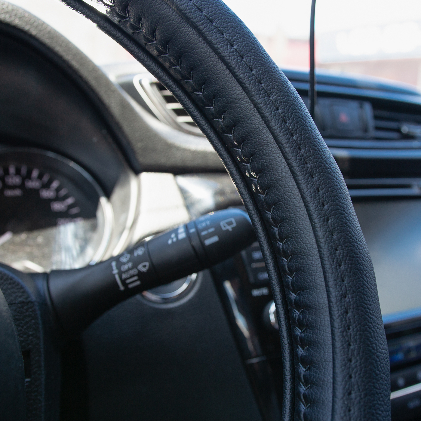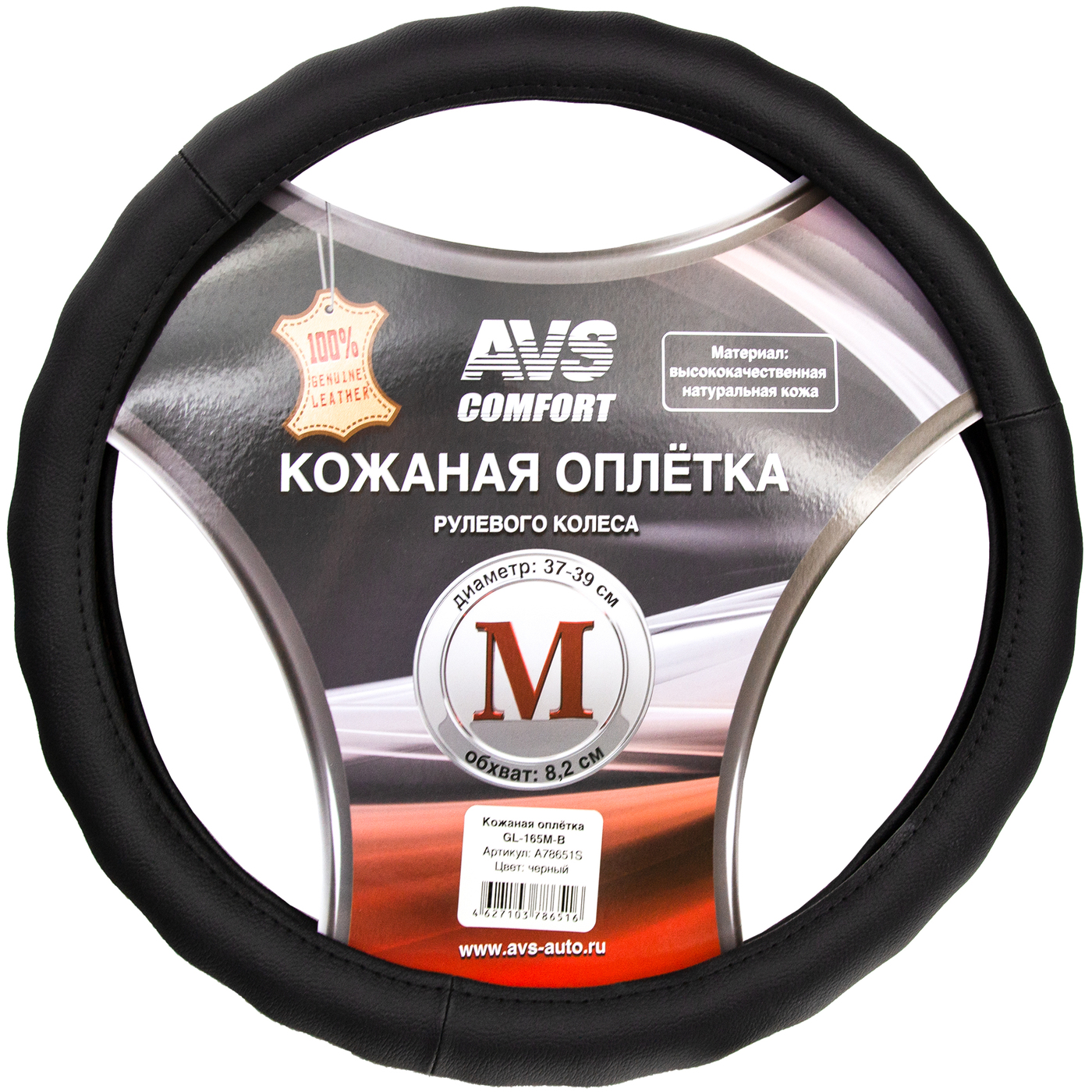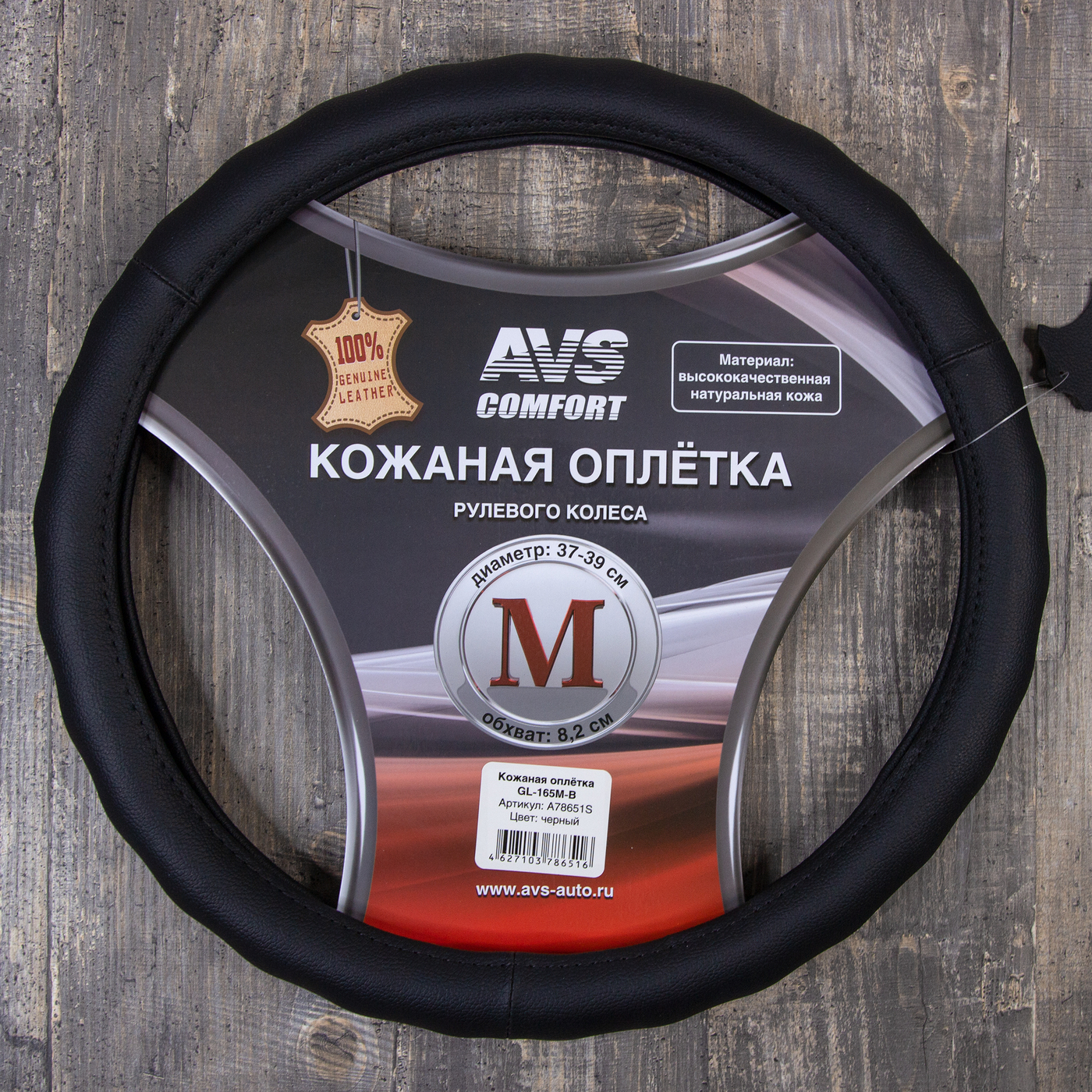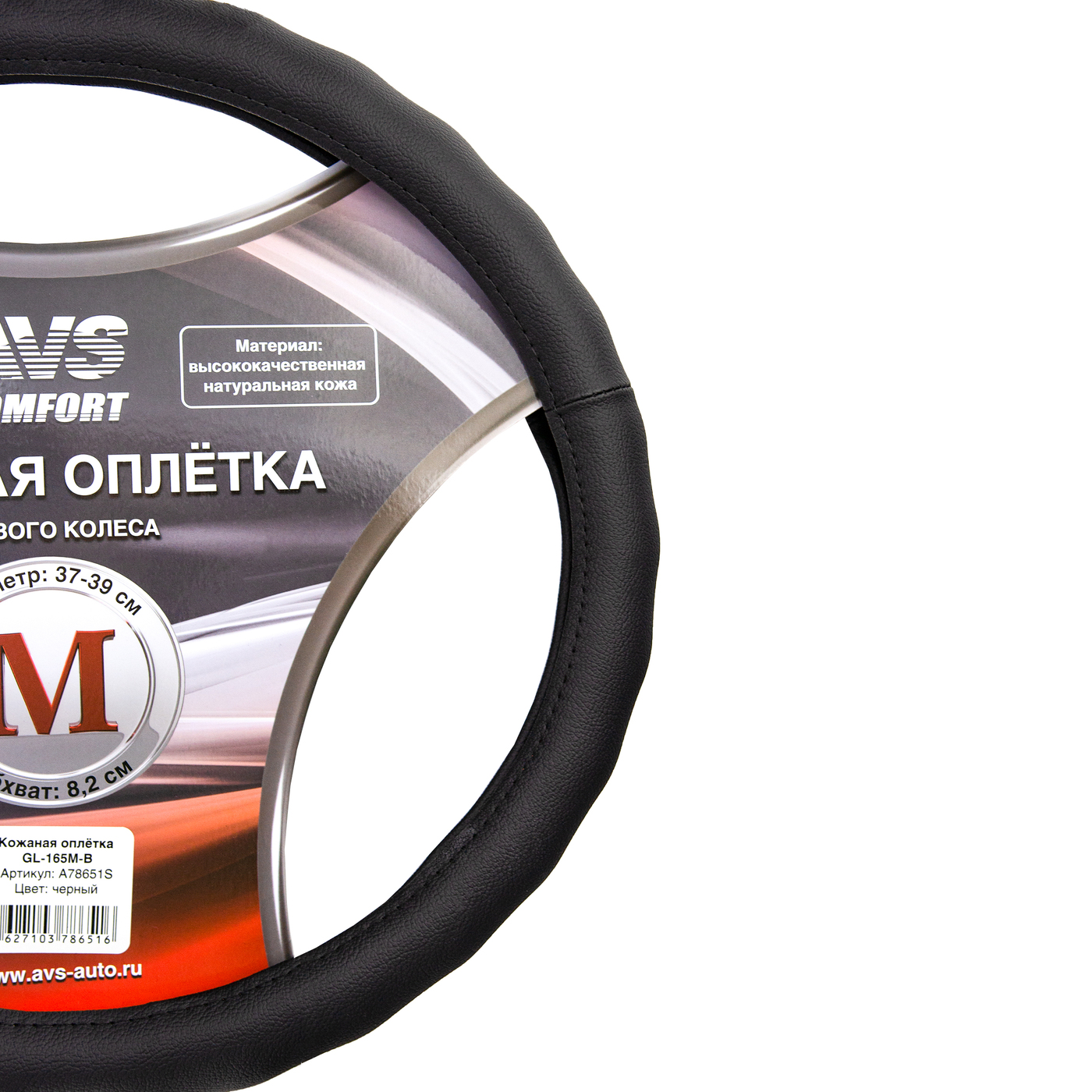 Оплетка на руль натуральная кожа AVS GL-165M-B размер M, черный (чехол на руль) A78651S