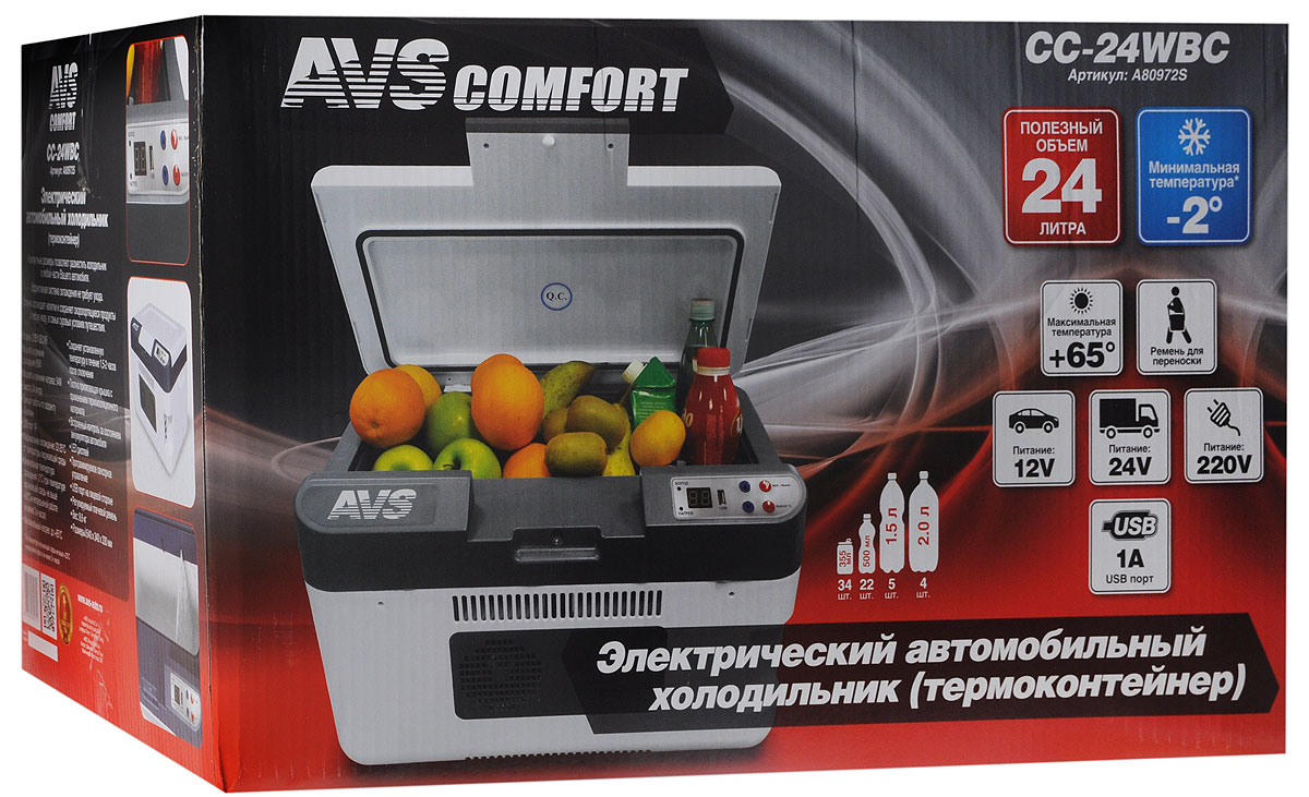 Холодильник автомобильный AVS "CC-24WBC", 24 л