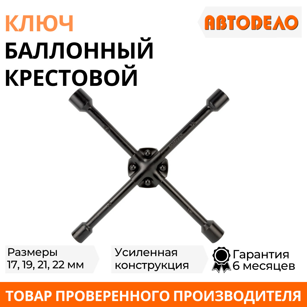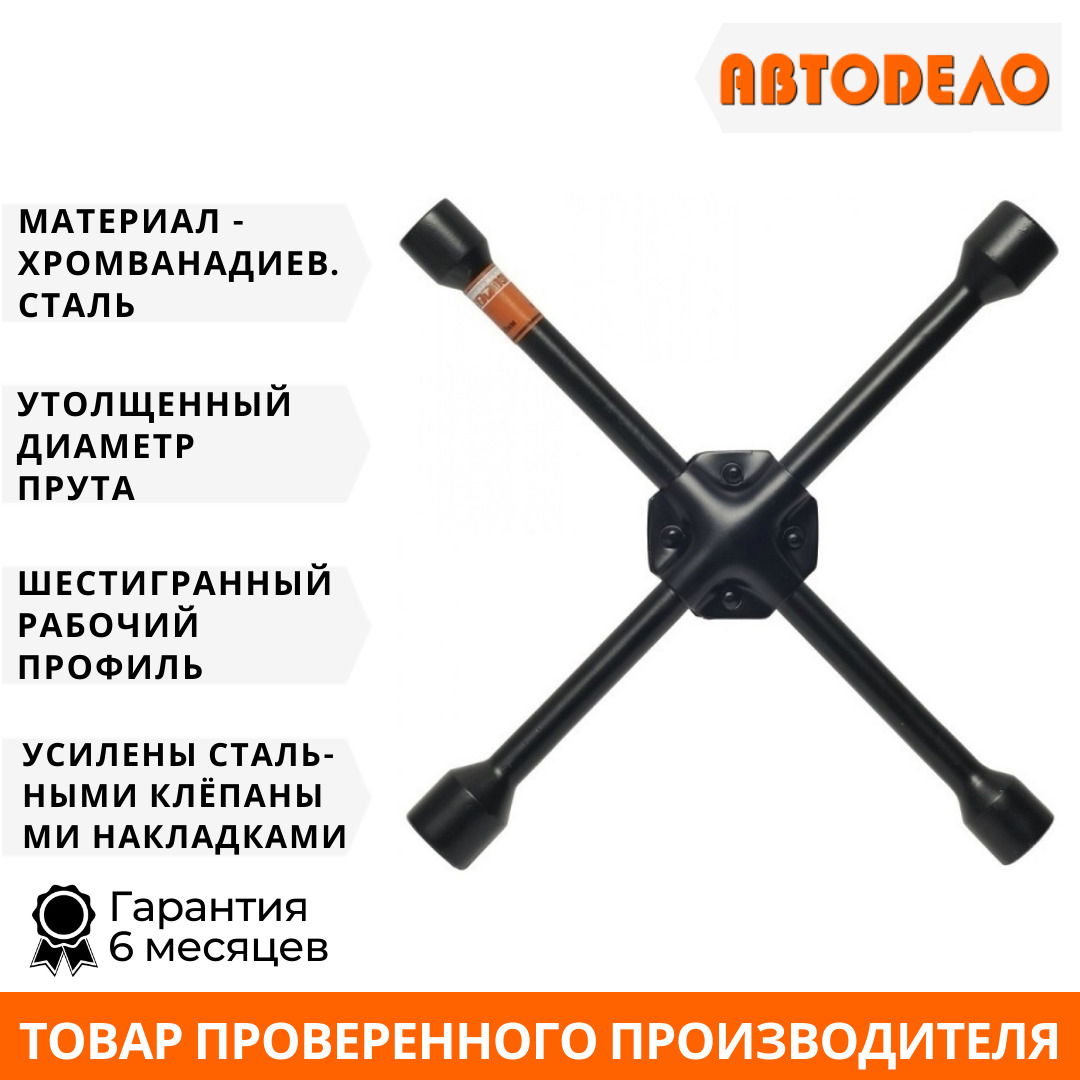 Ключ баллонный крестовой "АвтоДело" 17, 19, 21, 22 мм. усиленный, черный, 30817
