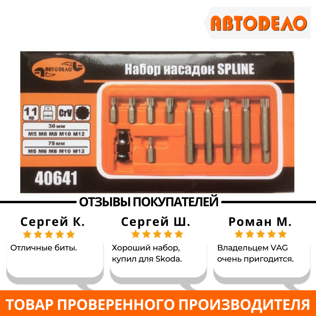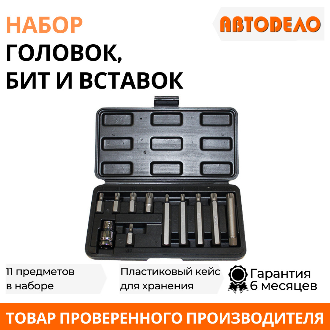 Набор головок, бит, вставок "АвтоДело" 11 предметов, SPLINE М5-М12, 40641