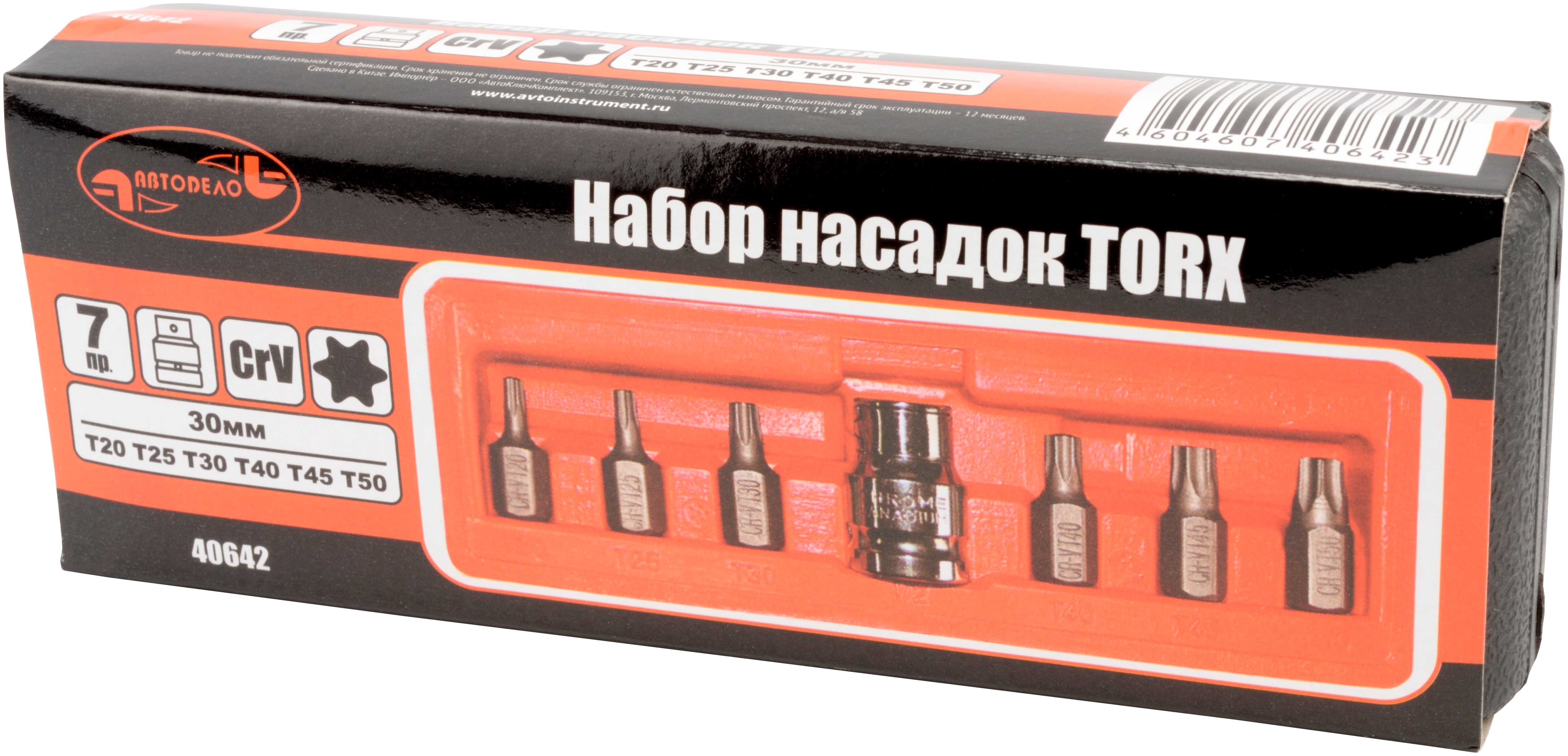 Набор бит, вставок, 7 пр. TORX Т20-Т50 30мм. АВТОДЕЛО 40642
