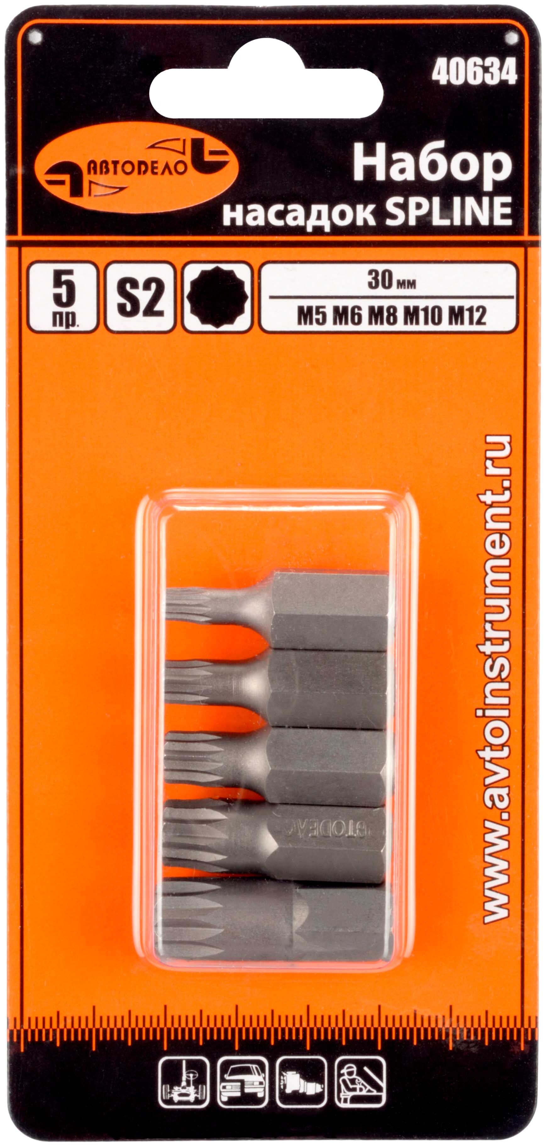 Набор бит, вставок, 5 пр. SPLINE М5-М12 30мм. блистер 40634 (АвтоDело) АВТОДЕЛО