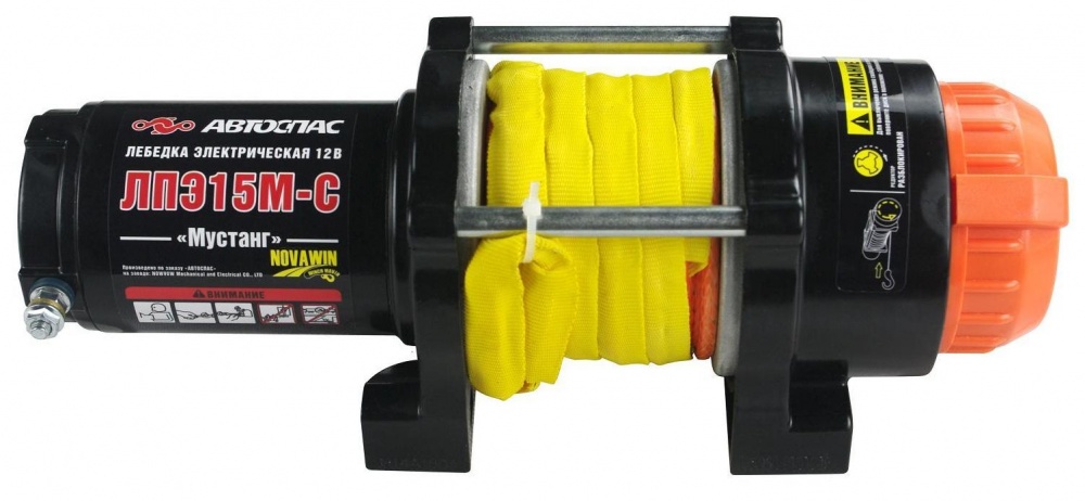 Лебедка Автоспас ЛПЭ15М-С Мустанг электрическая 12В с синтетическим тросом W1401