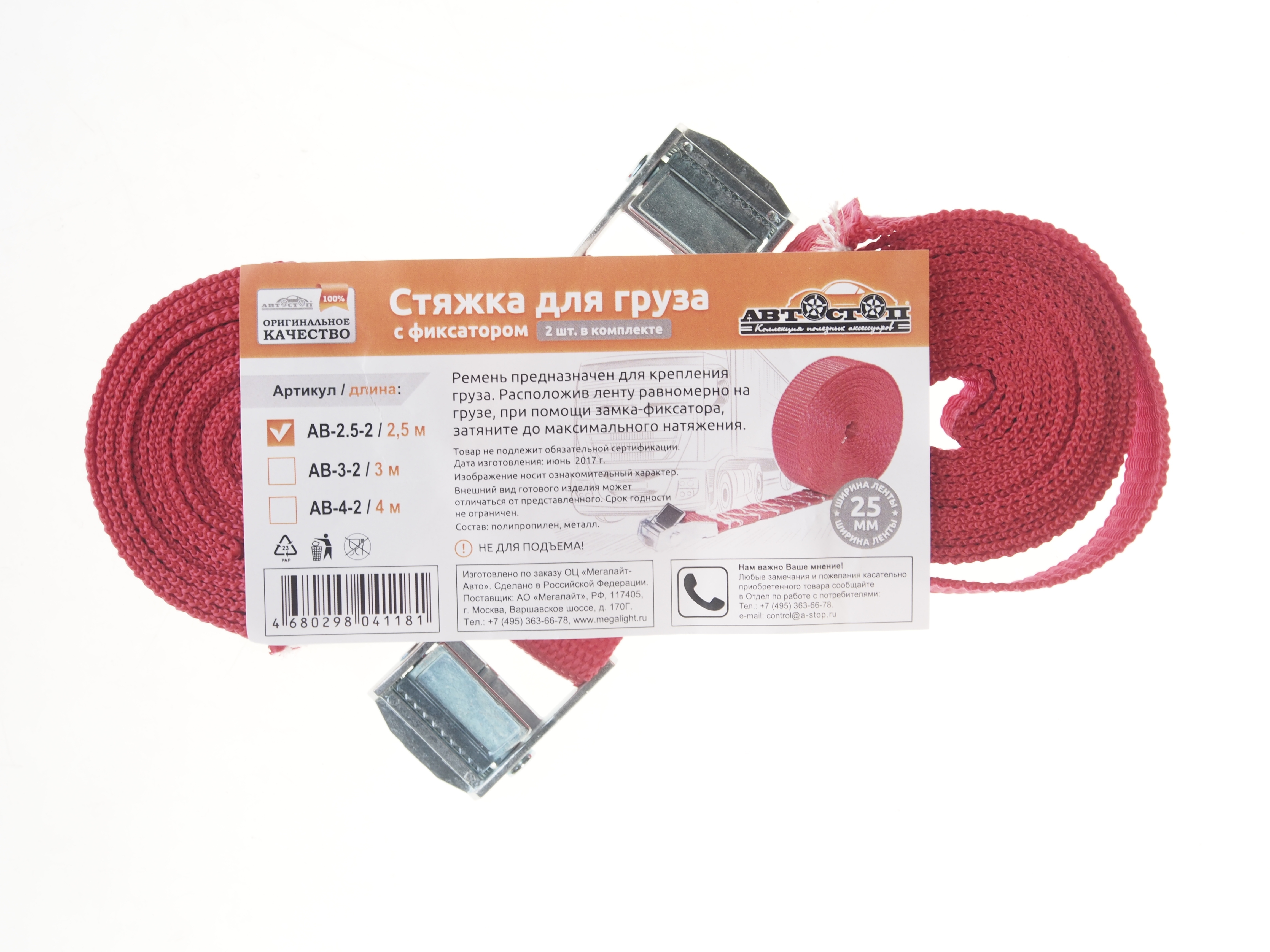 Стяжка для груза с фиксатором 2,5м х 25мм (к-т 2шт., европакет) AB-2.5-2 АВТОСТОП /1/50
