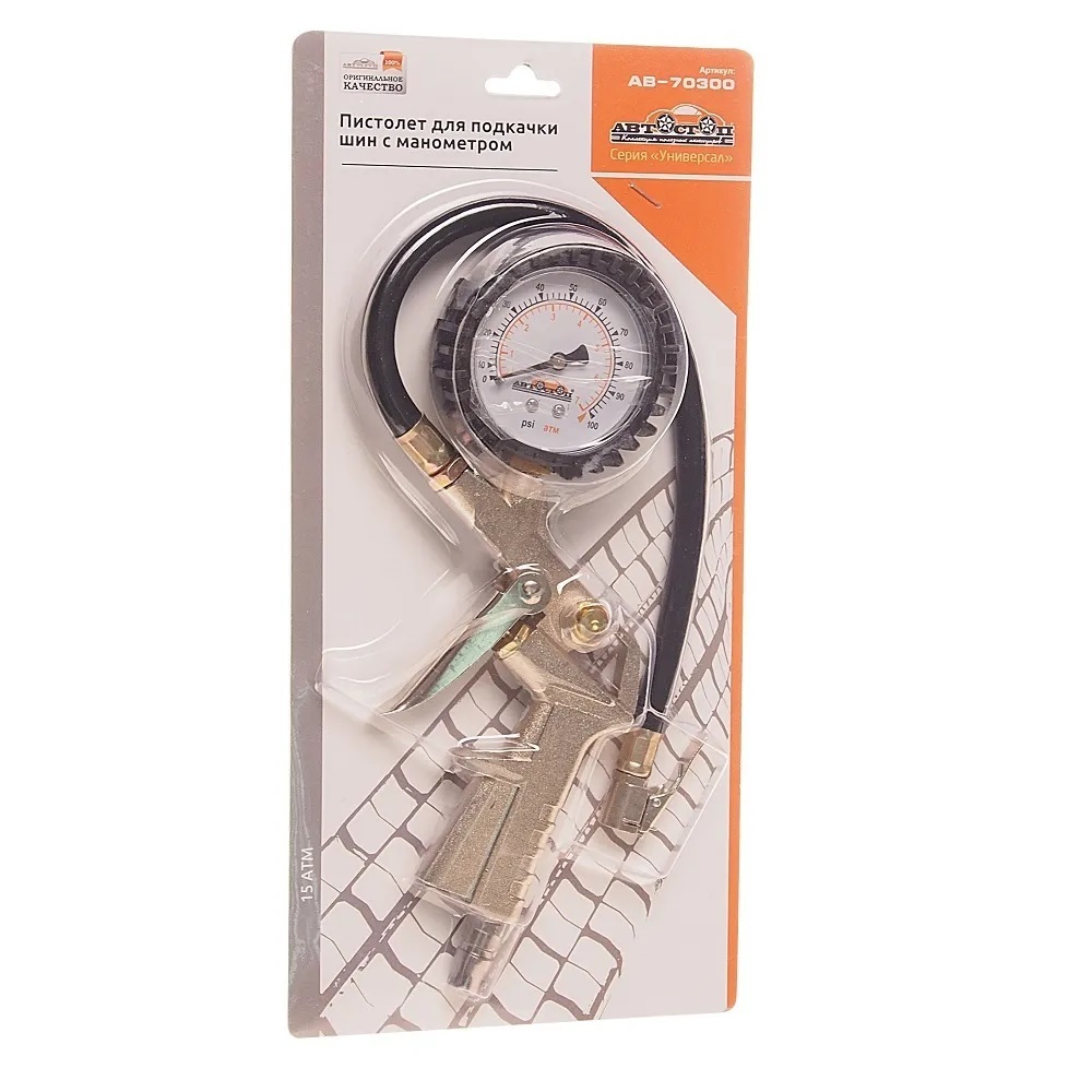 Пистолет для подкачки шин AB-70300 CHROME/BLACK с манометром 15атм (металл) АВТОСТОП