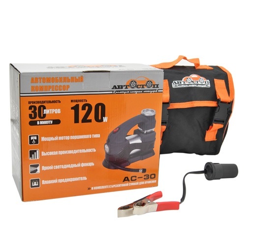 Компрессор AC-30 поршневой 120W (30л/мин, 10А) в сумке 12V АВТОСТОП