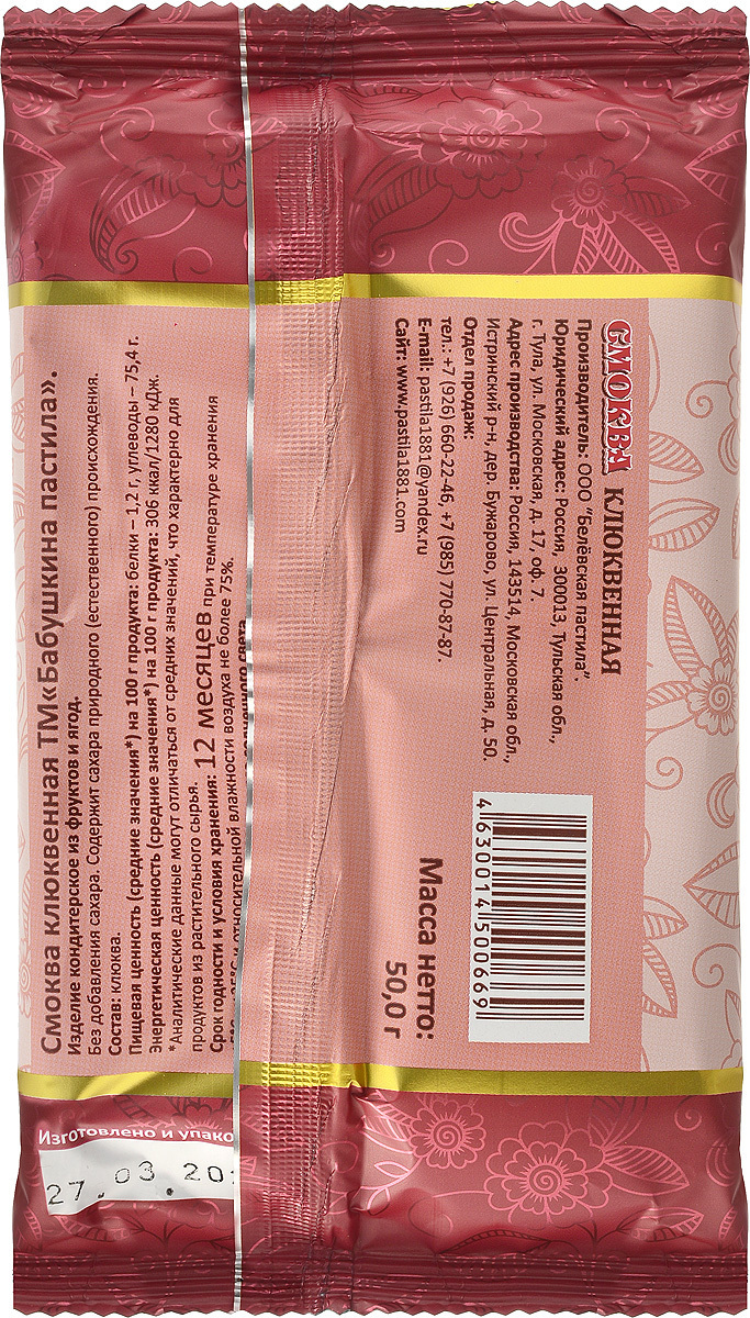 Пастила Бабушкина пастила Смоква клюквенная, 50 г х 3 шт