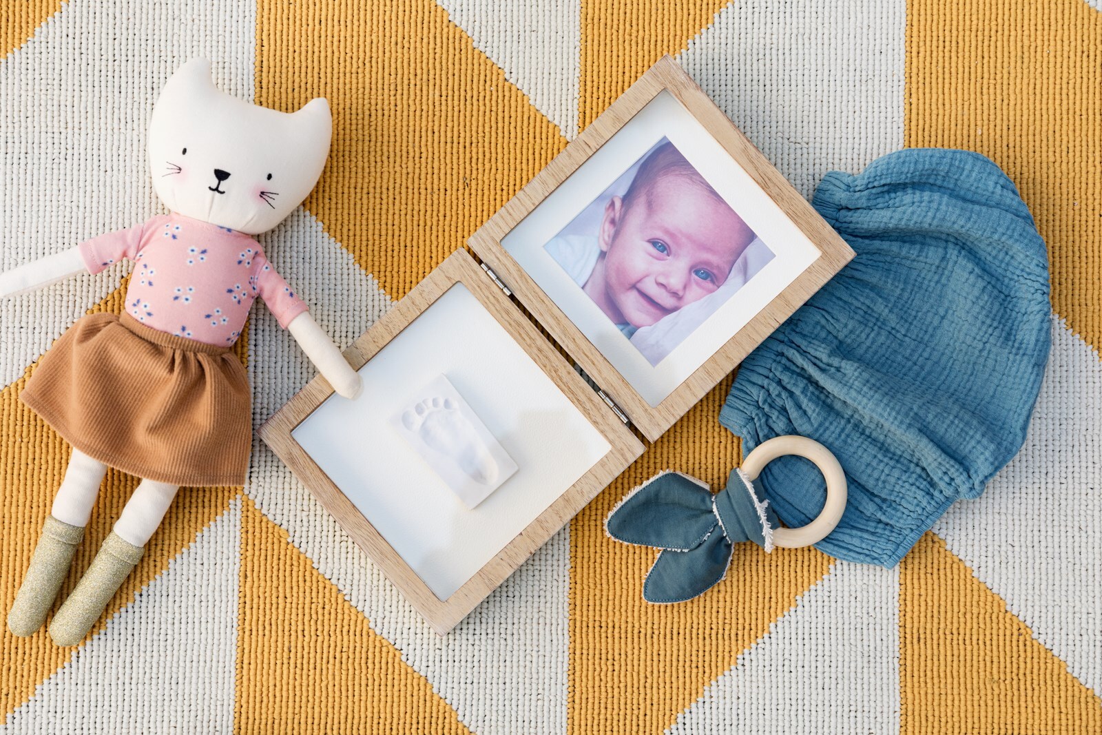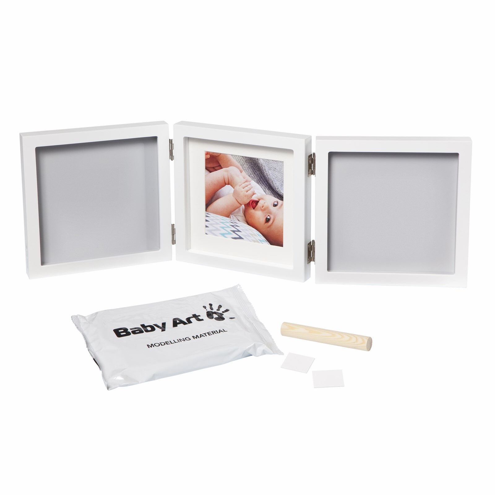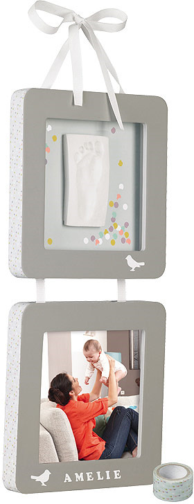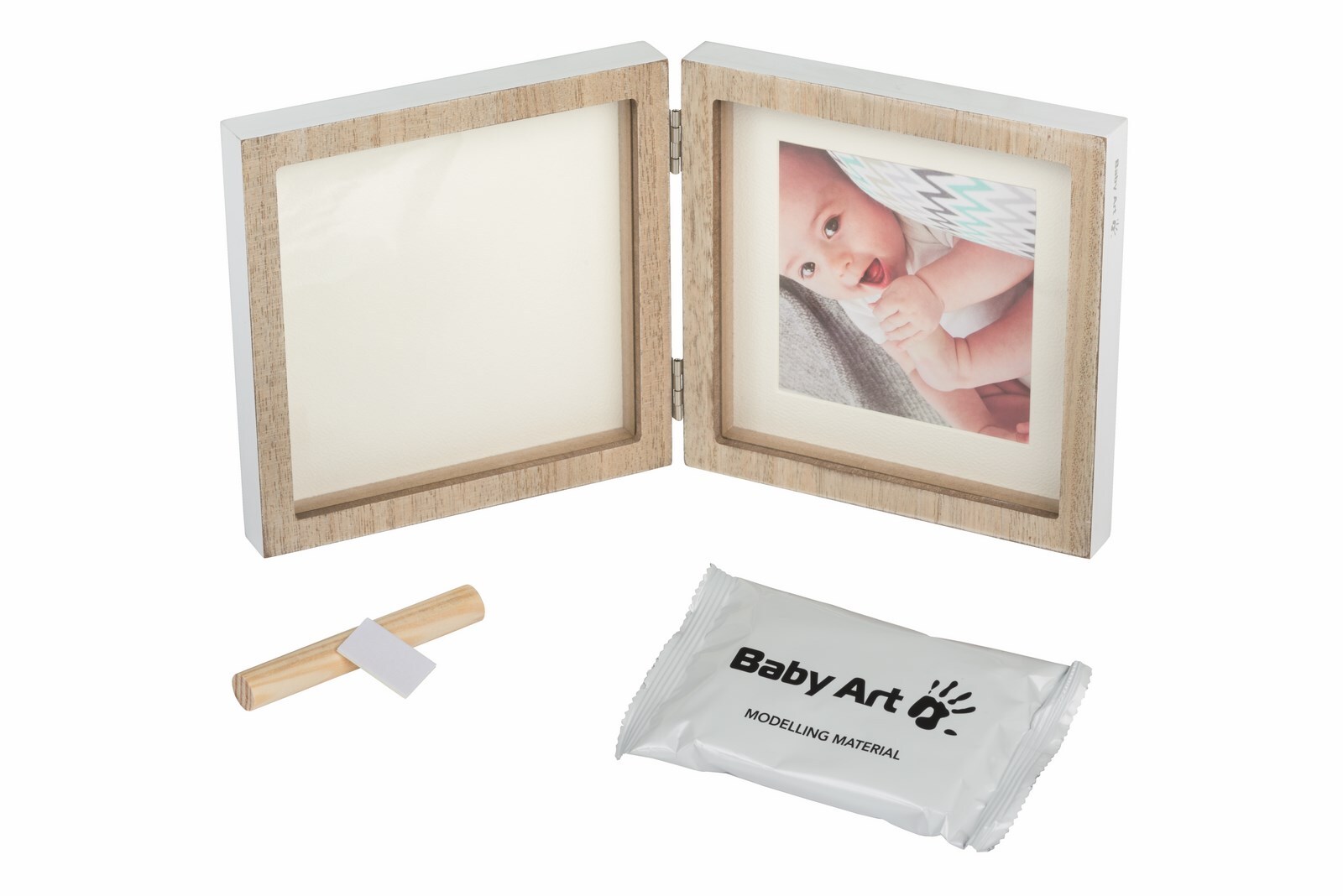 Рамочка двойная Baby Art с отпечатком; беленое дерево