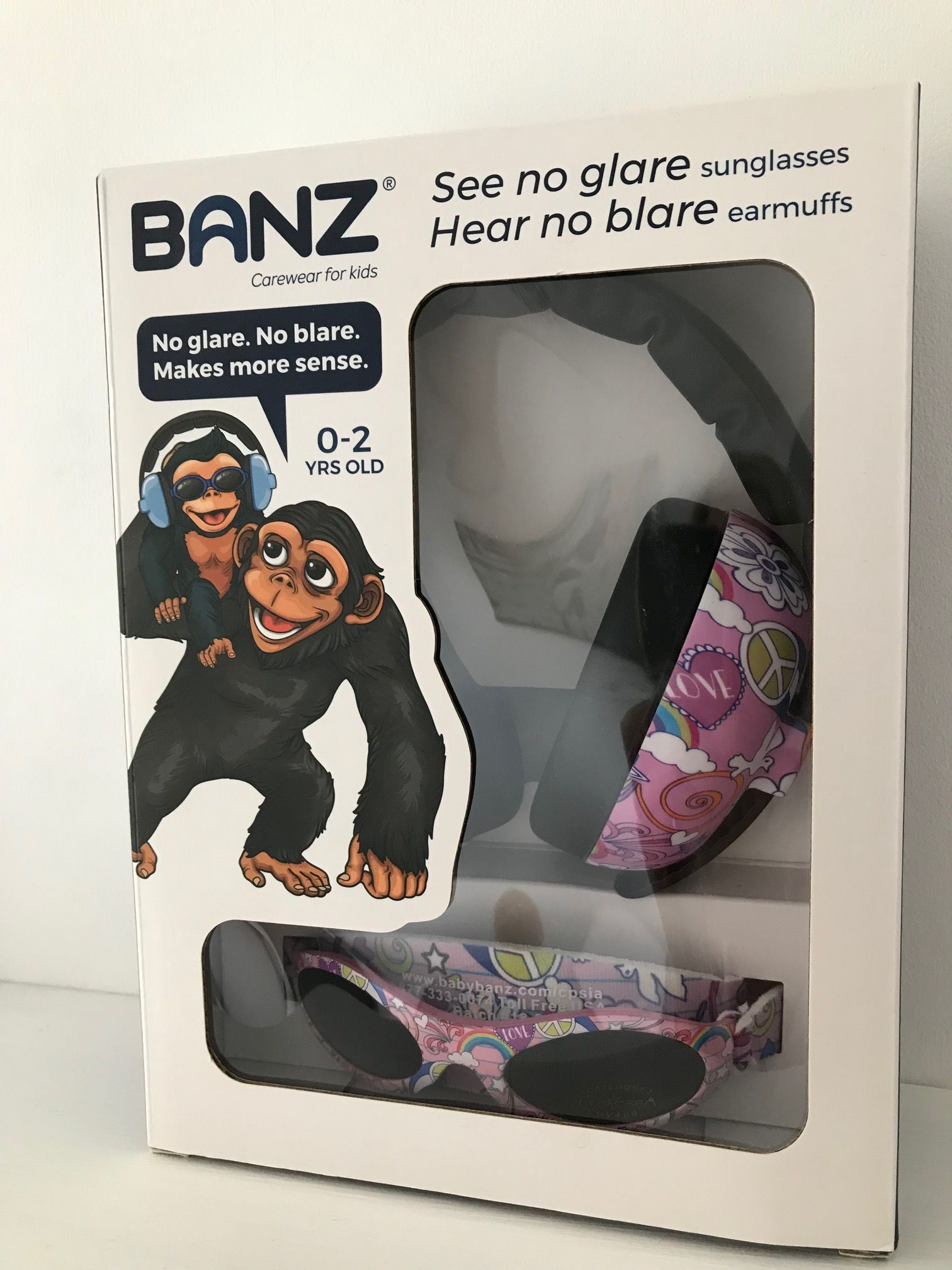 Наушники шумозащитные и солнцезащитные очки для детей 0-2 года в подарочном наборе, BANZ "Миру-мир".