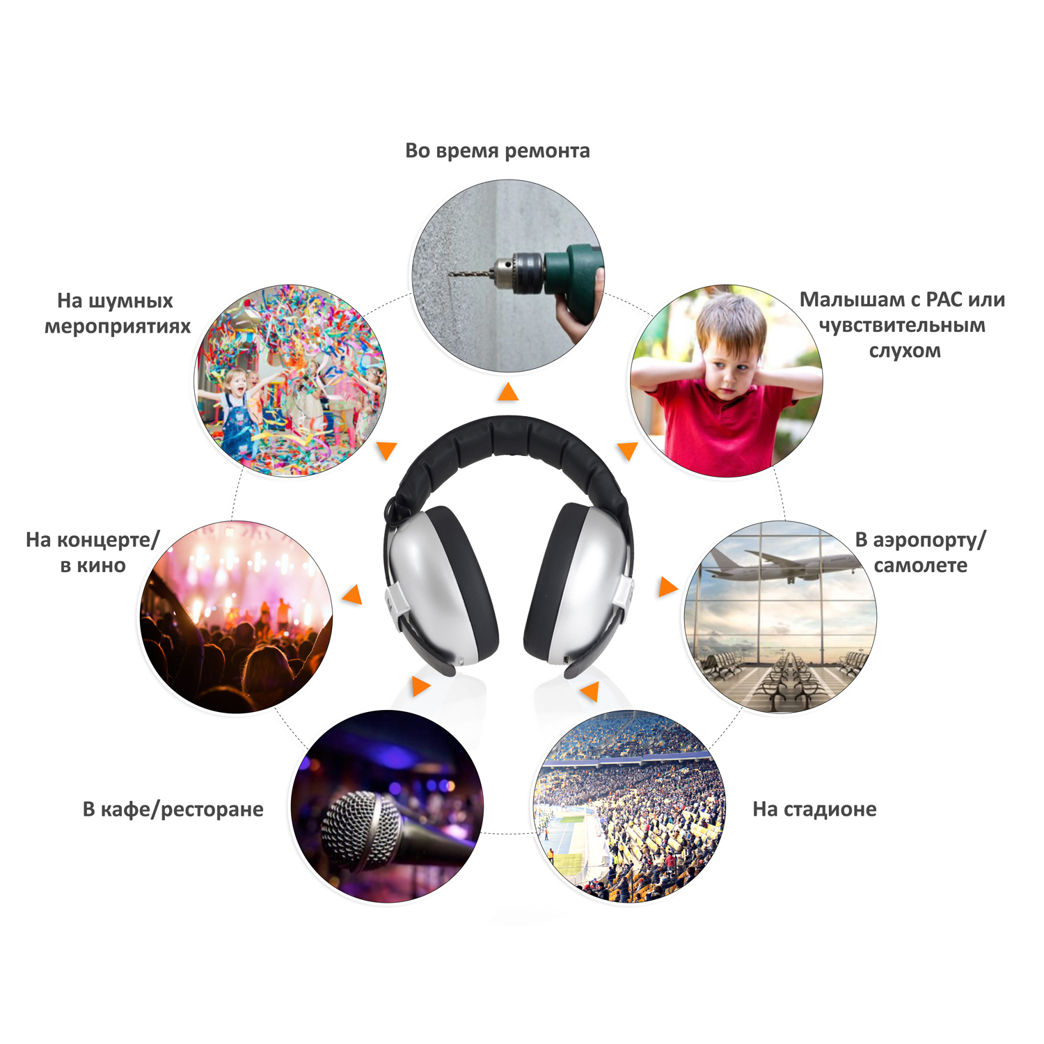 Наушники от шума (шумозащитные) для детей 0-2 года, BANZ "Серебро".