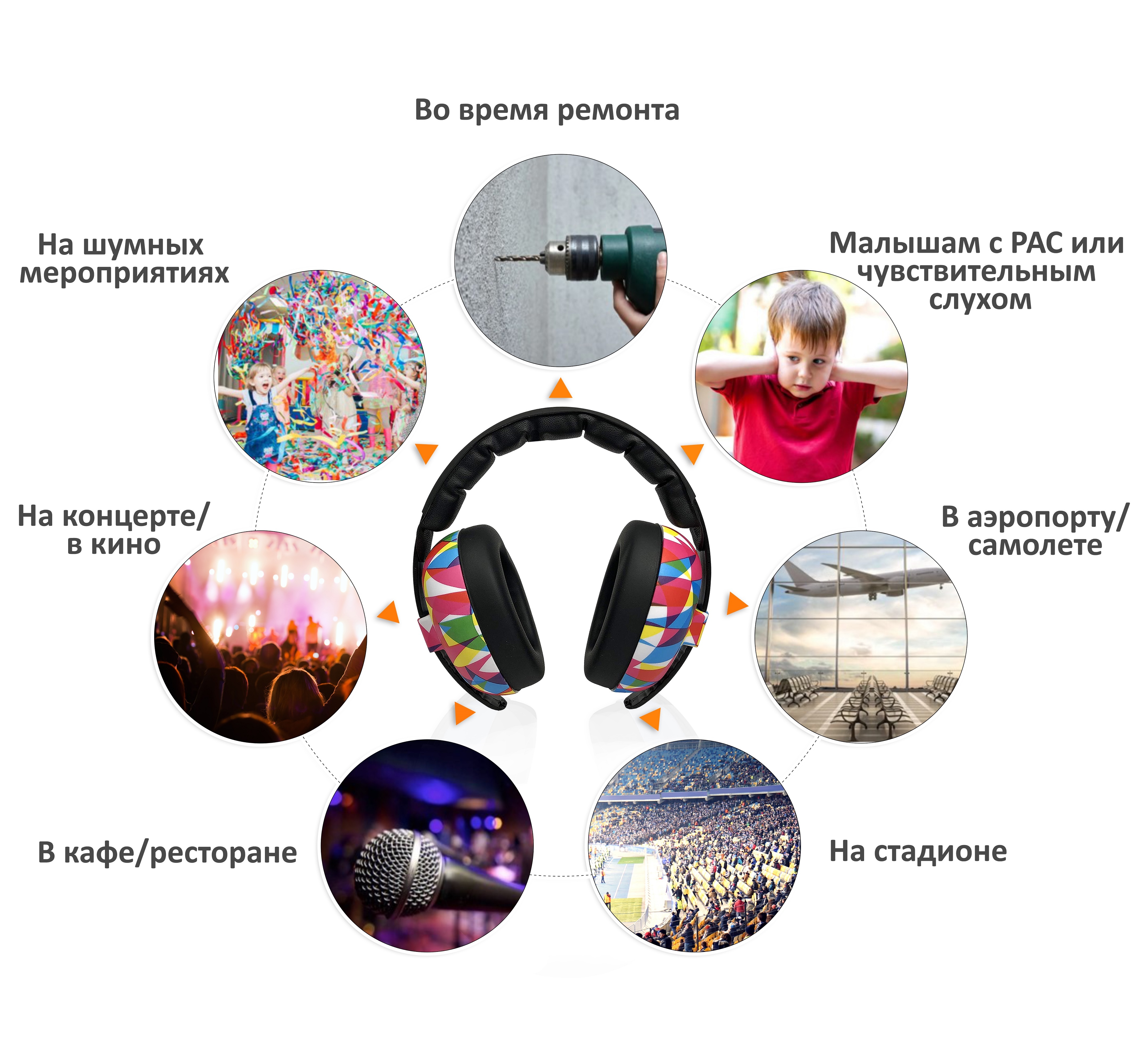 Наушники от шума (противошумные) для детей 0-2 года, BANZ, цвет граффити.