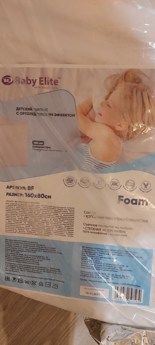 Матрас Baby Elite Foam, Беспружинный, 80х160 см