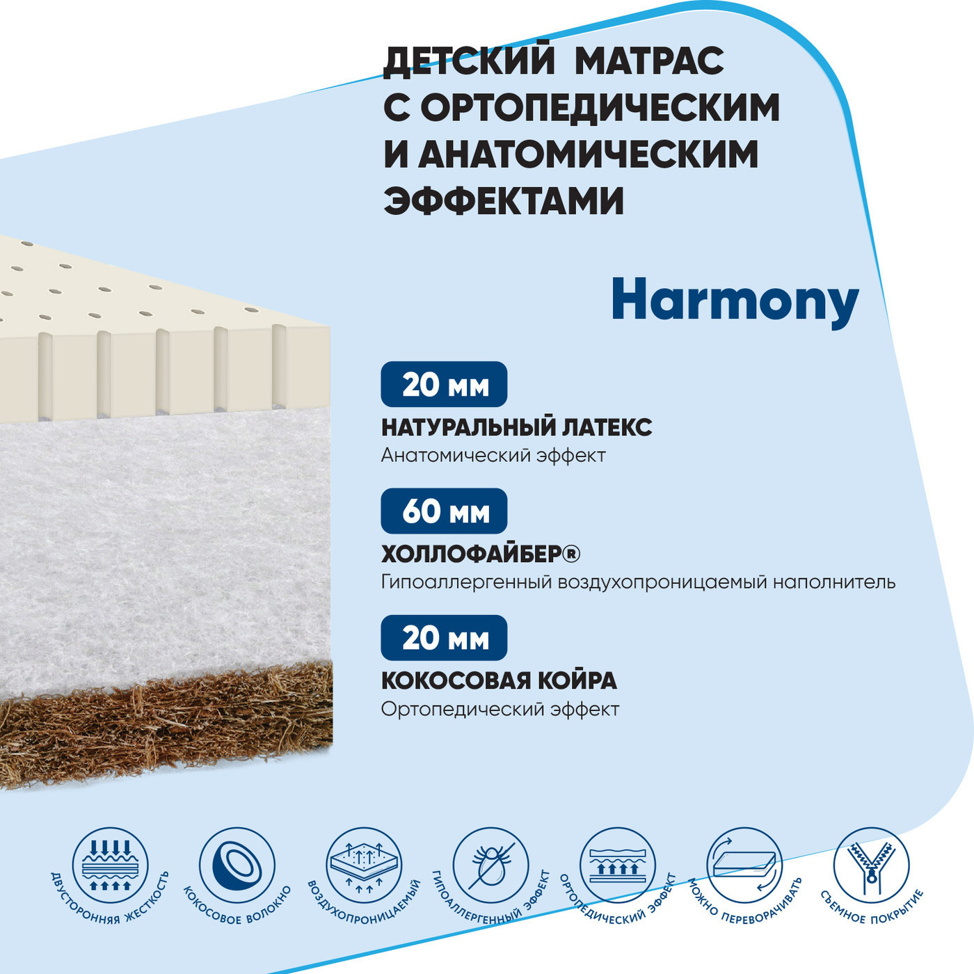 Матрас детский Baby Elite Harmony, Беспружинный, 60х120 см