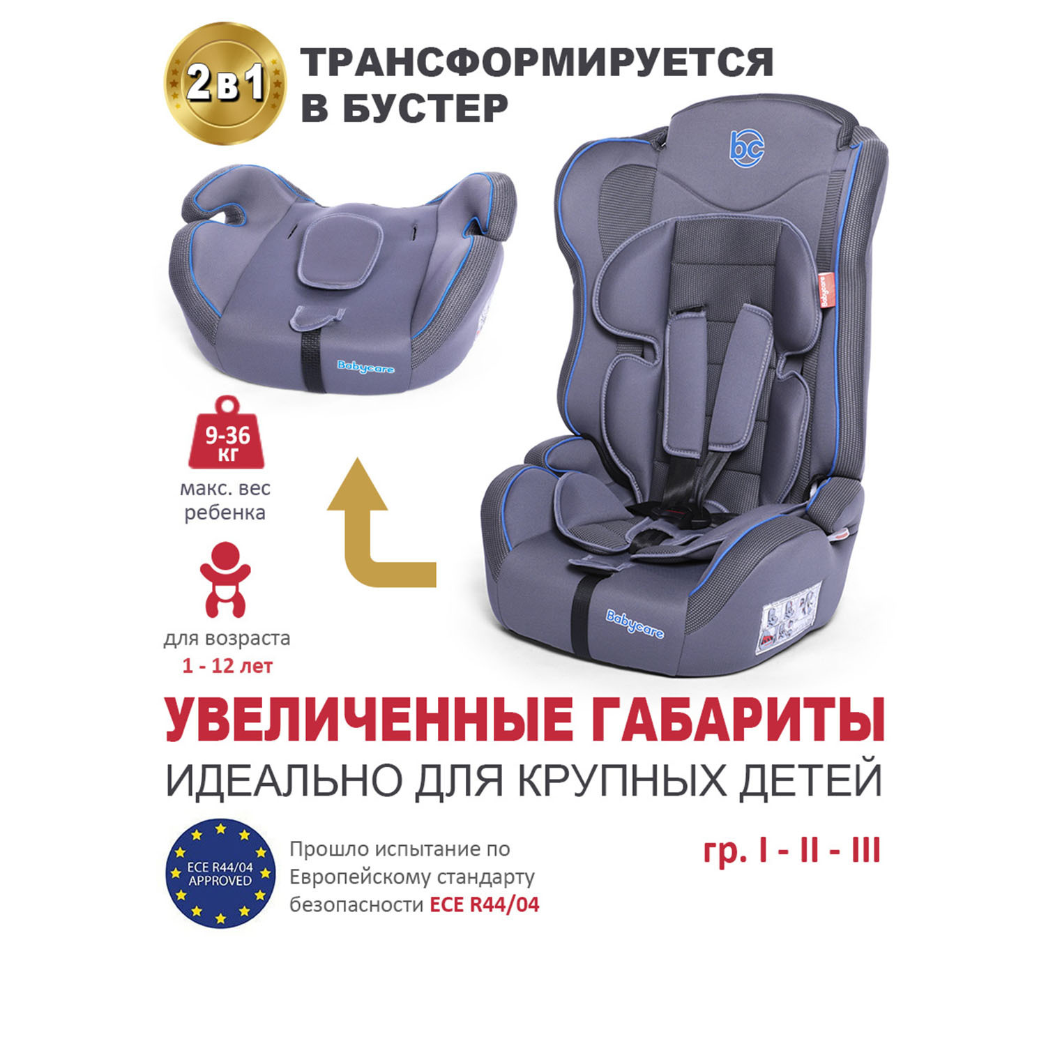 Автокресло детское Upiter Plus гр I/II/III, 9-36кг, (1-12лет), Babycare