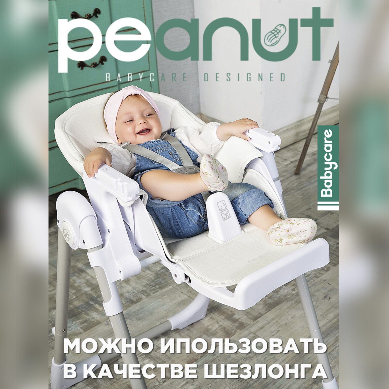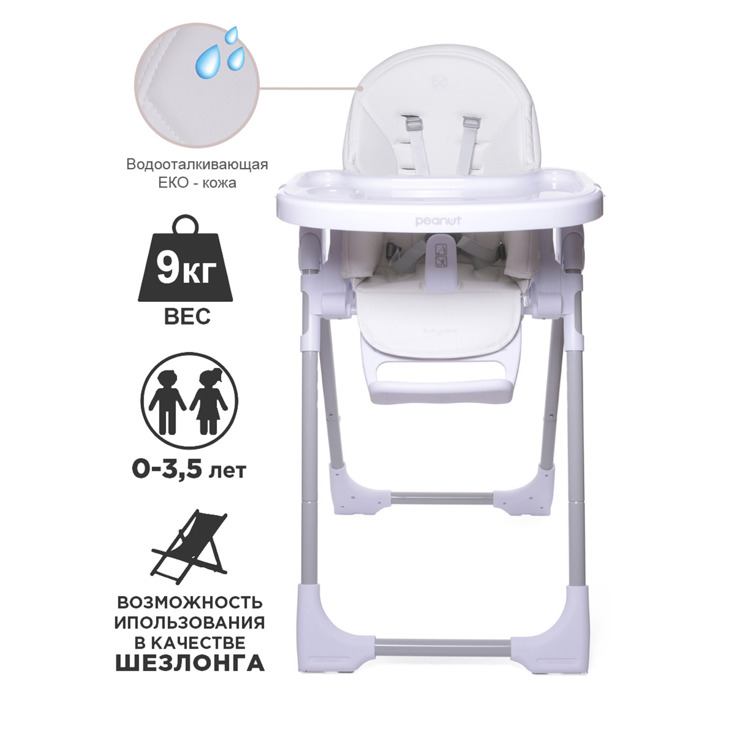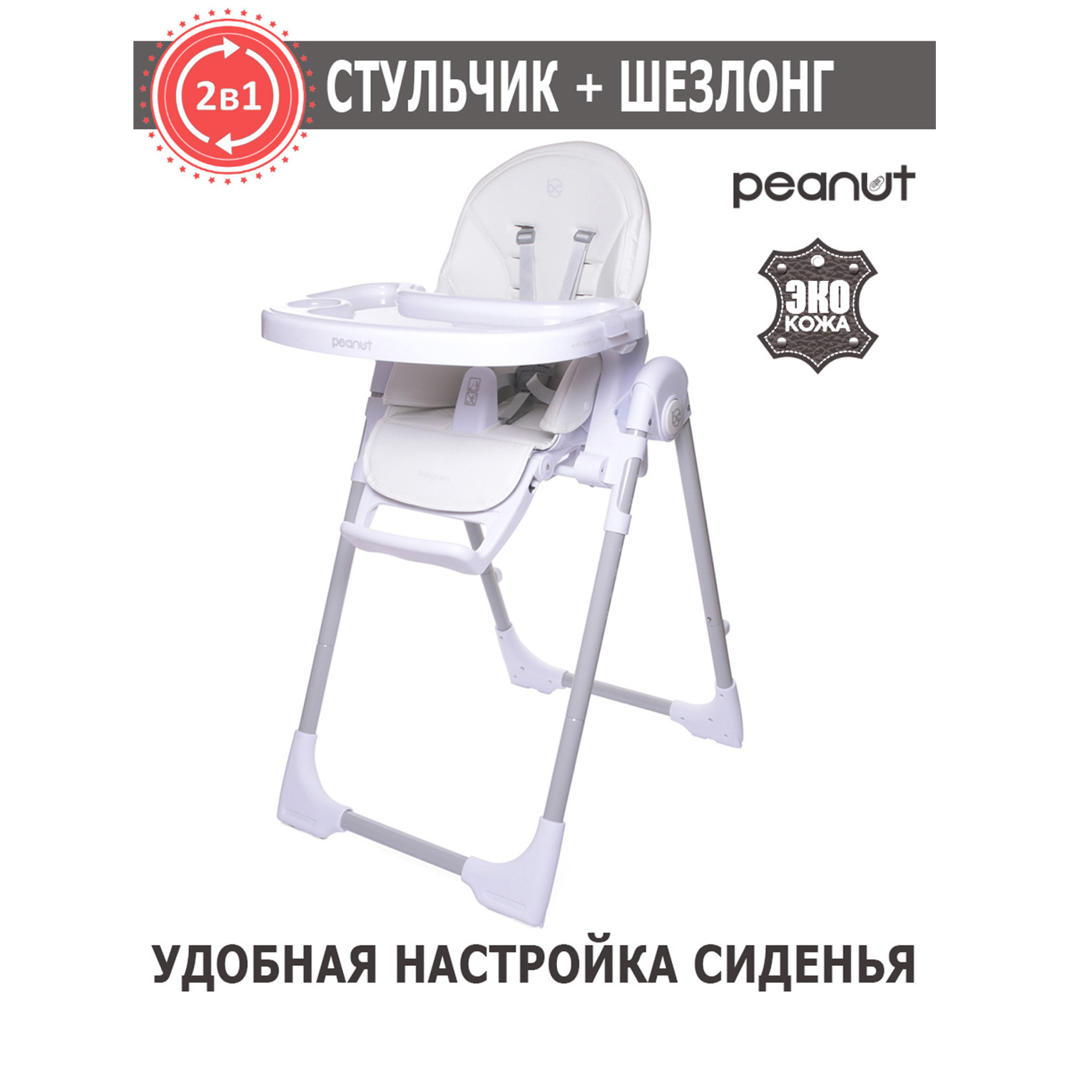 Стульчик для кормления детский PEANUT, шезлонг 0+, чехол моющийся из ЭКО-кожи, BabyCare