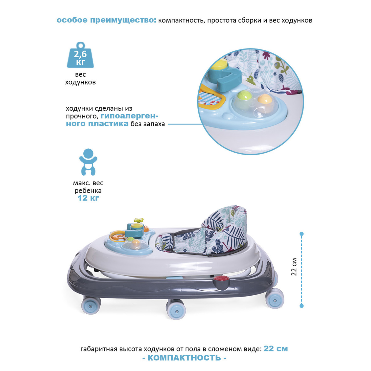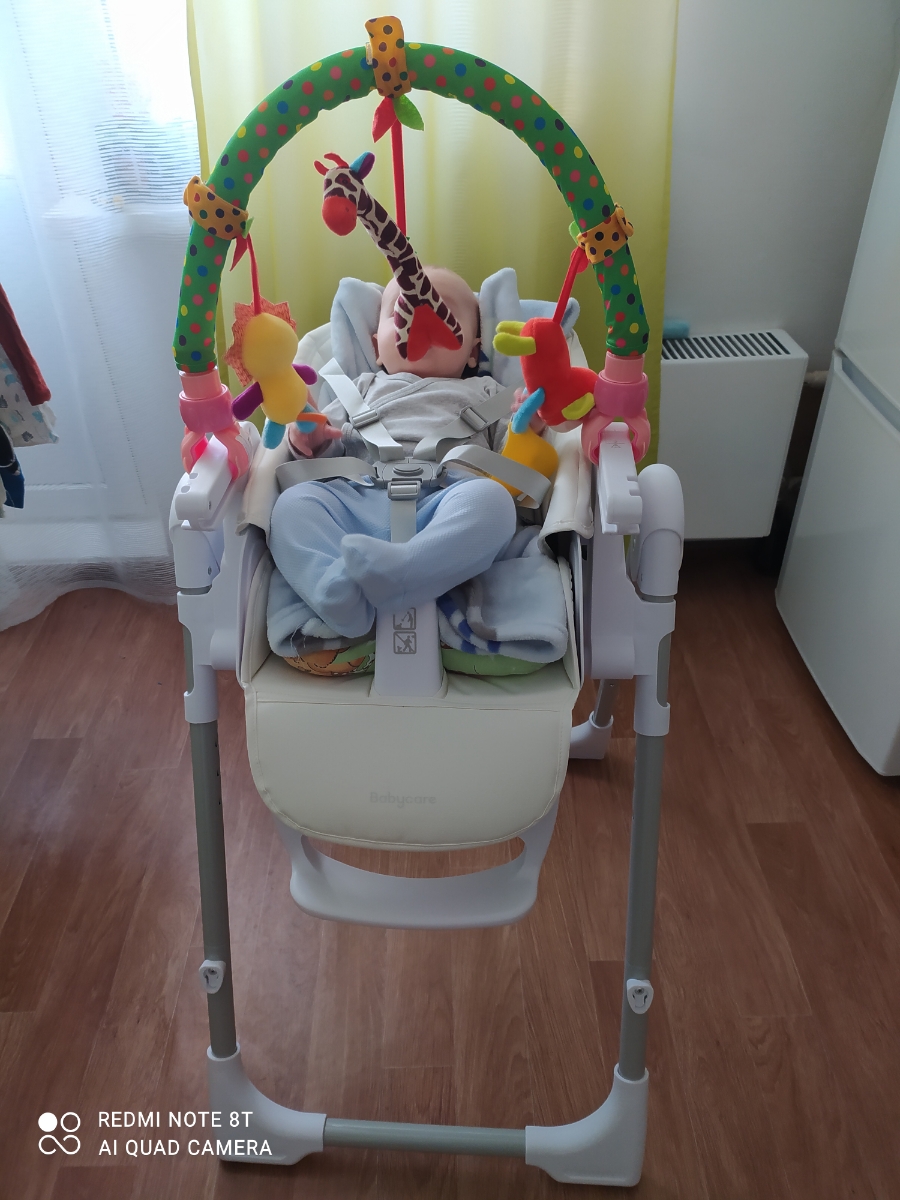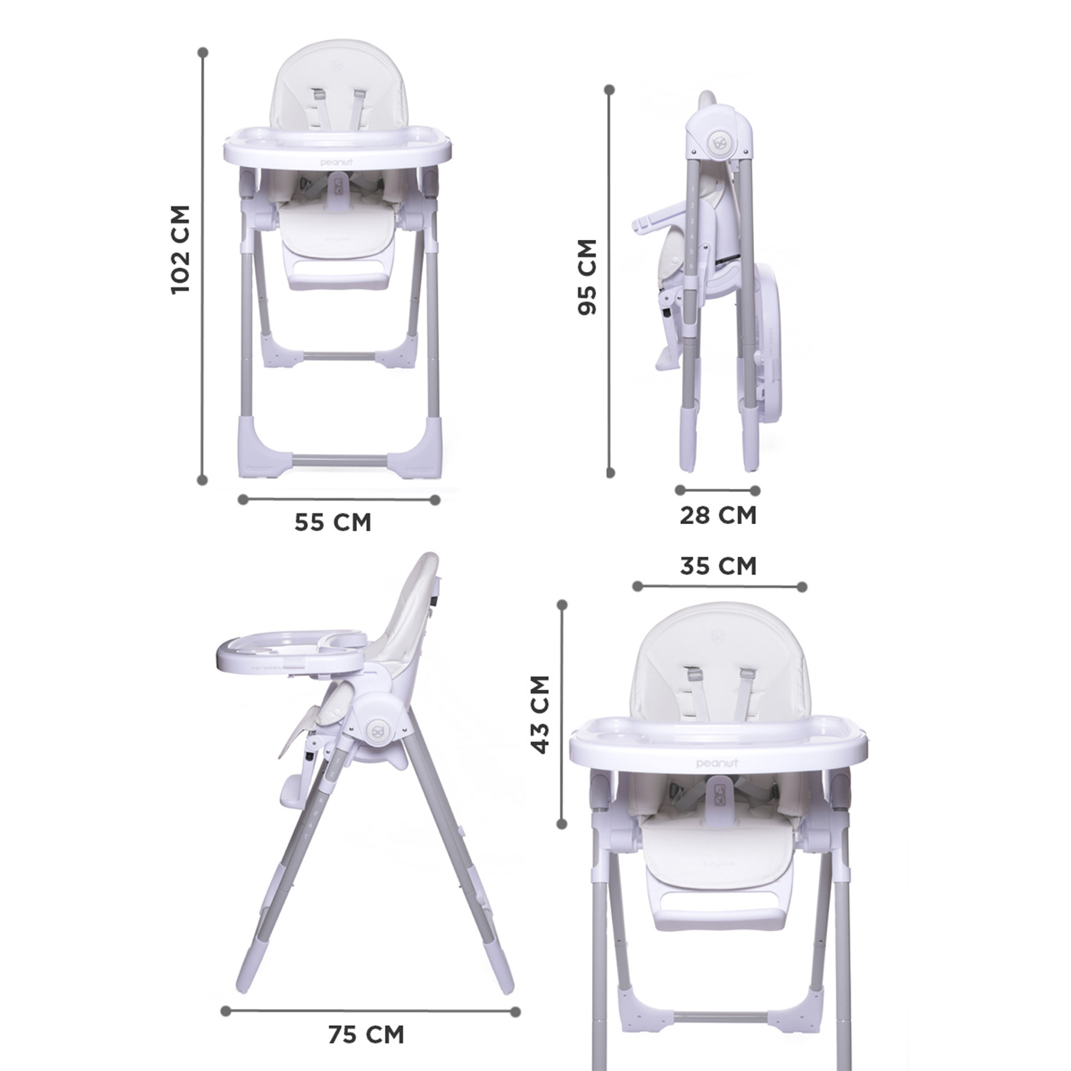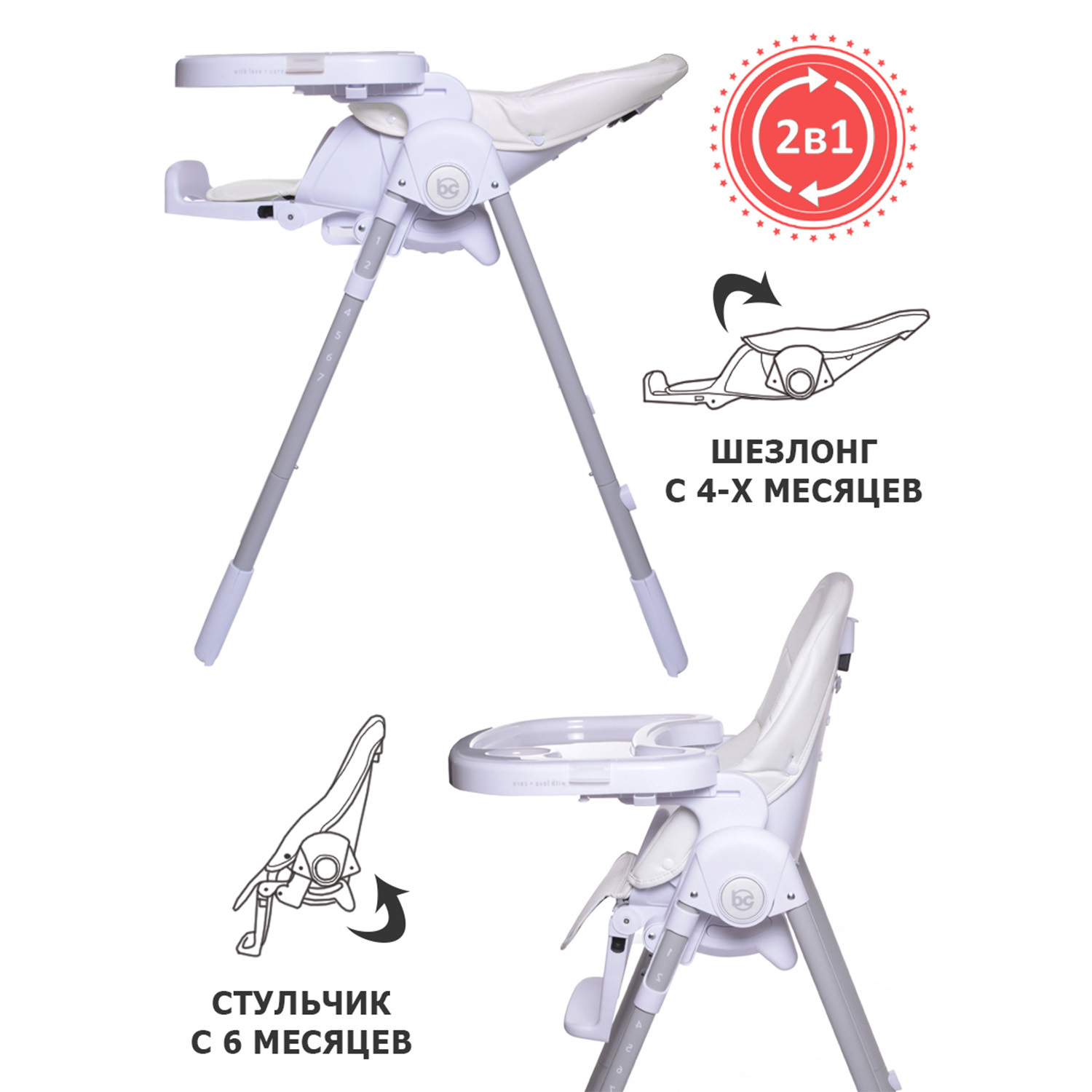 Стульчик для кормления детский PEANUT, шезлонг 0+, чехол моющийся из ЭКО-кожи, BabyCare