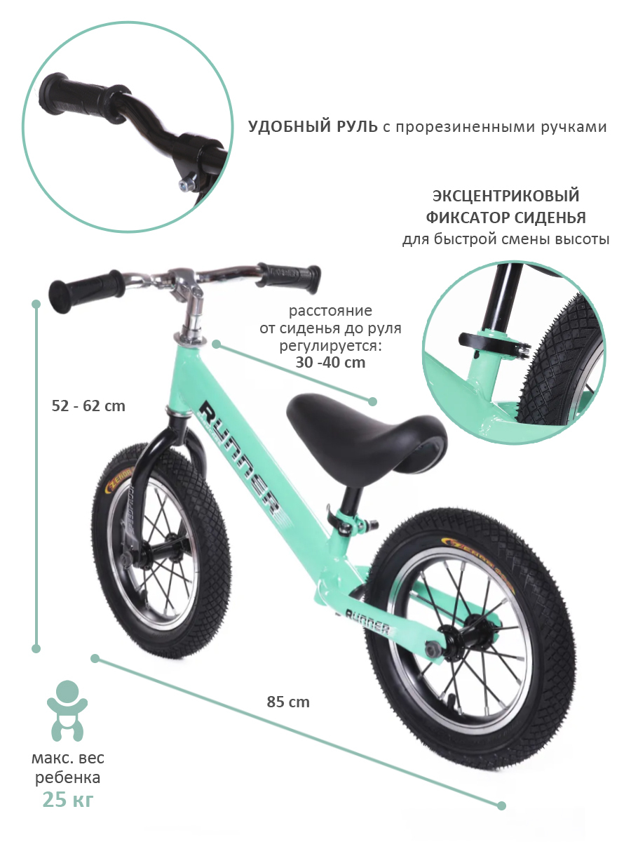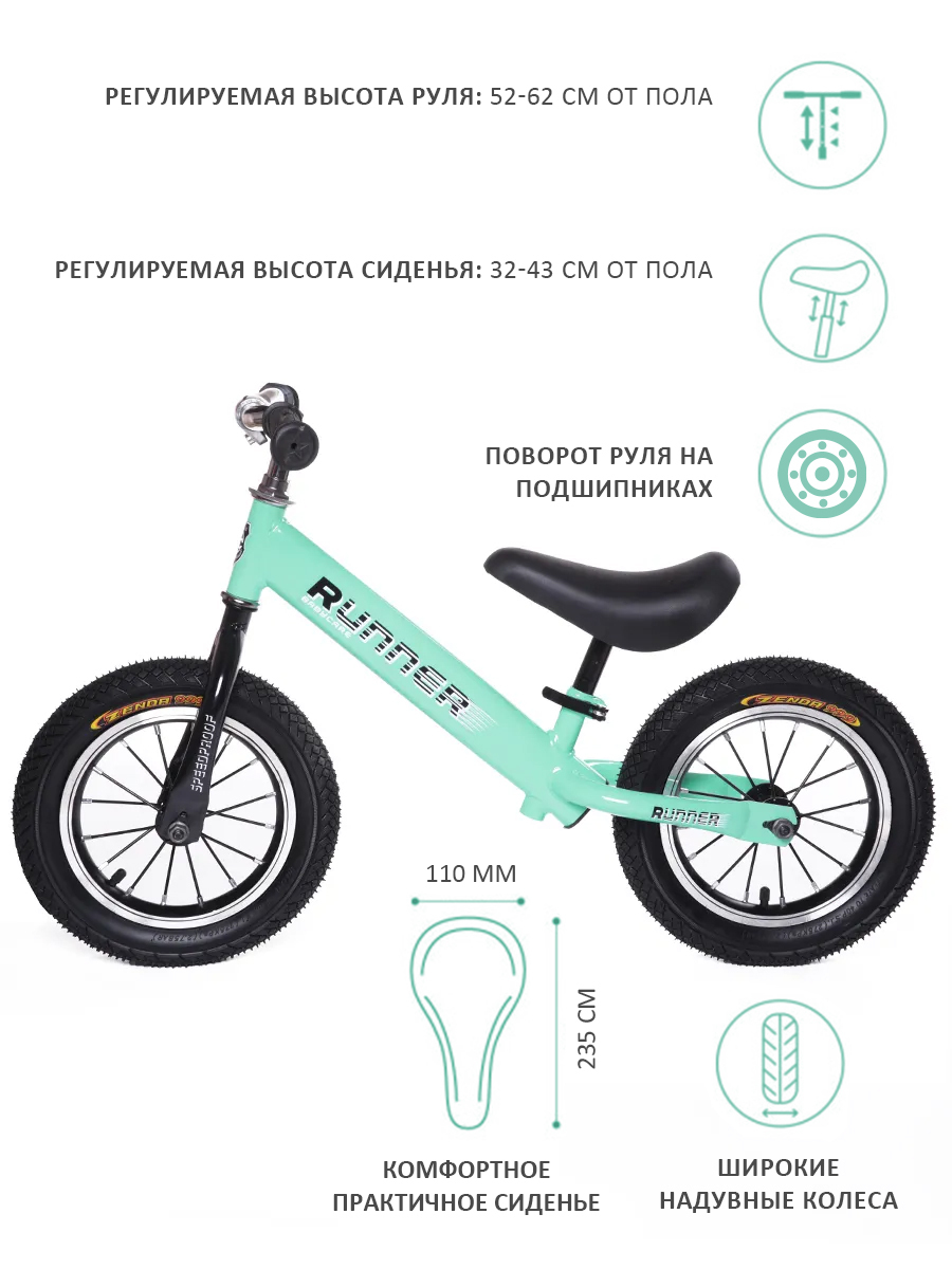 BabyCare, Беговел детский RUNNER, 2+, облегченная рама, резиновые колеса