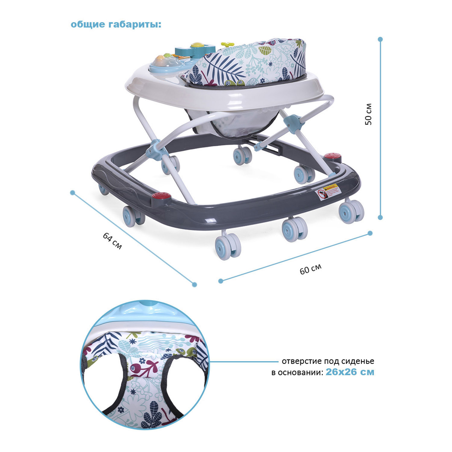 Пушкар каталка с родительской ручкой Sport car (резиновые колеса, кожаное сиденье), Babycare