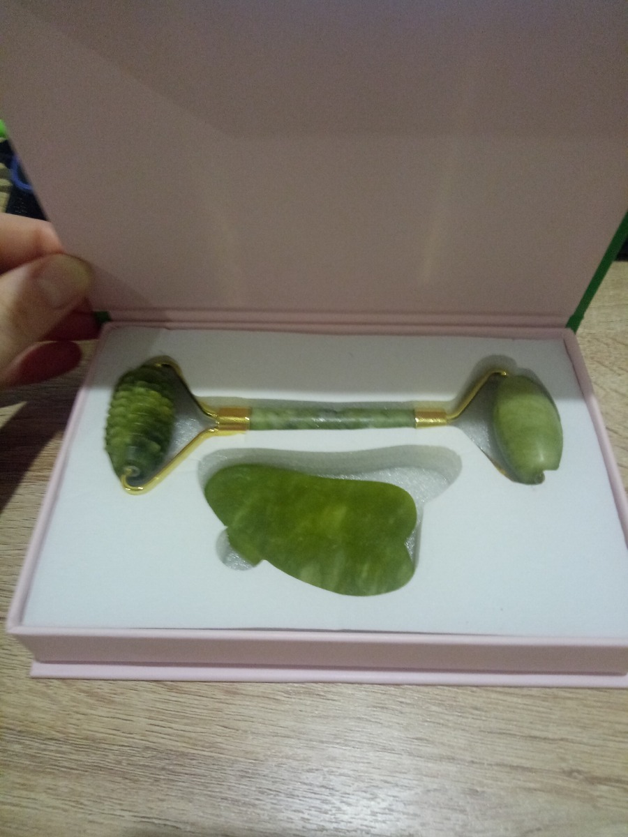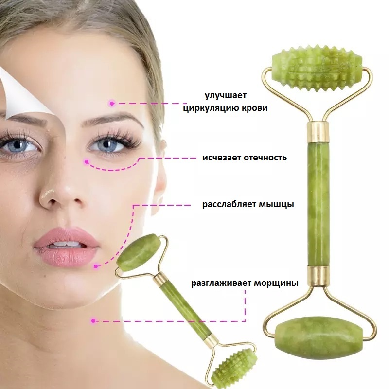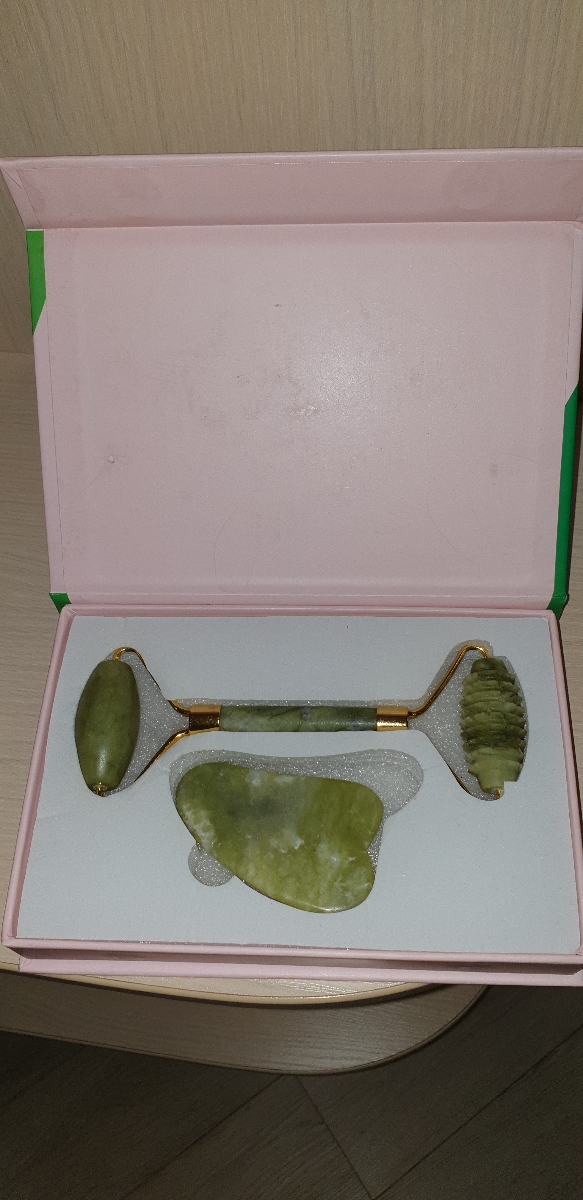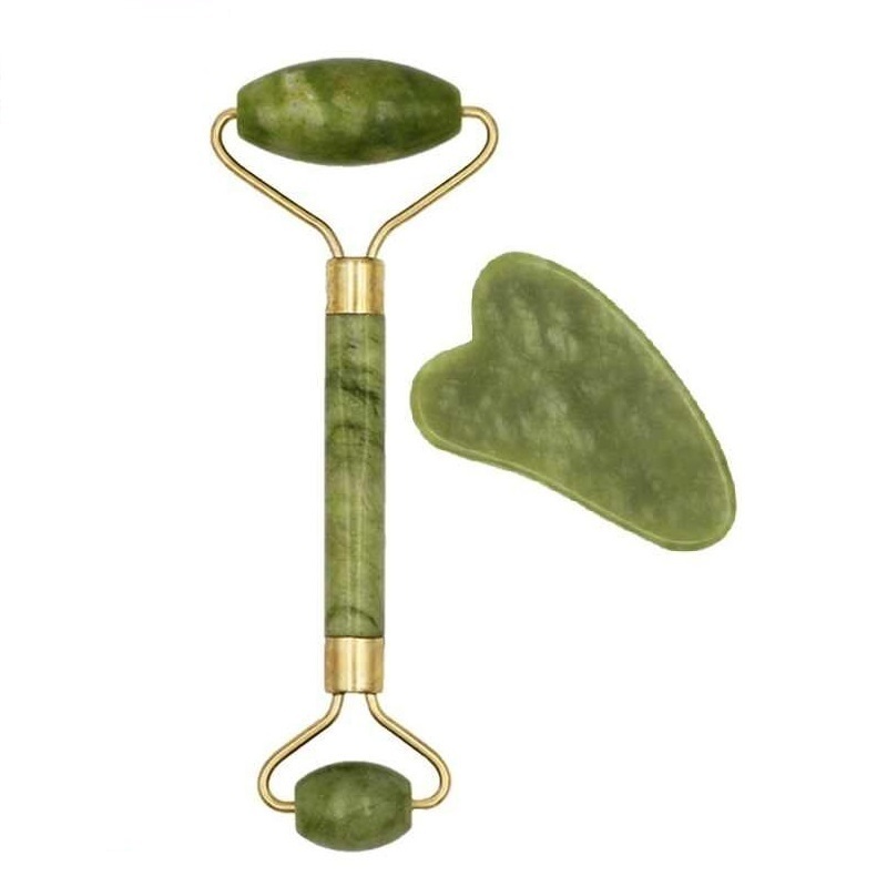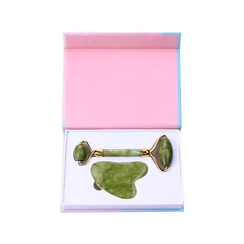 BAEFACE Роликовый нефритовый массажер для лица + скребок Гуаша в подарочной упаковке
