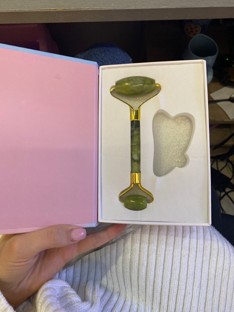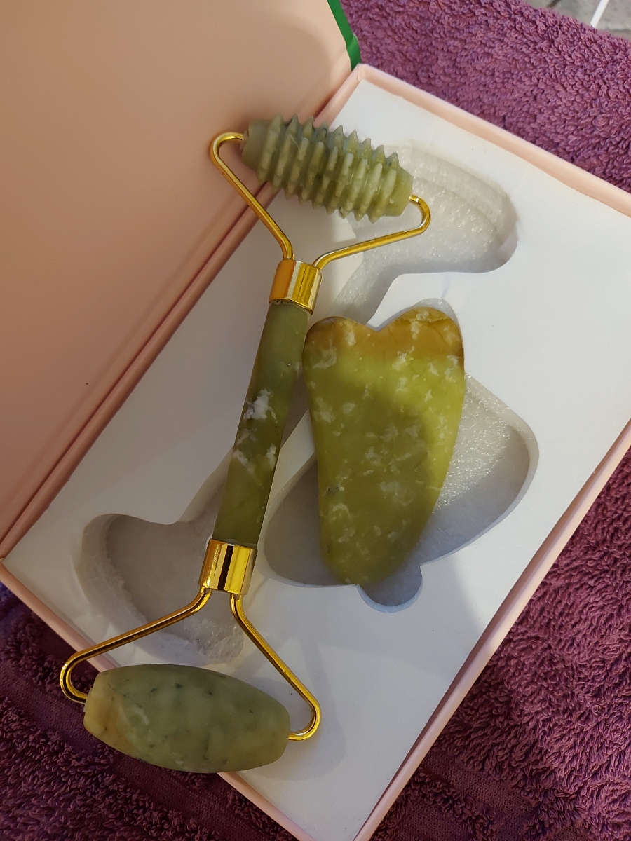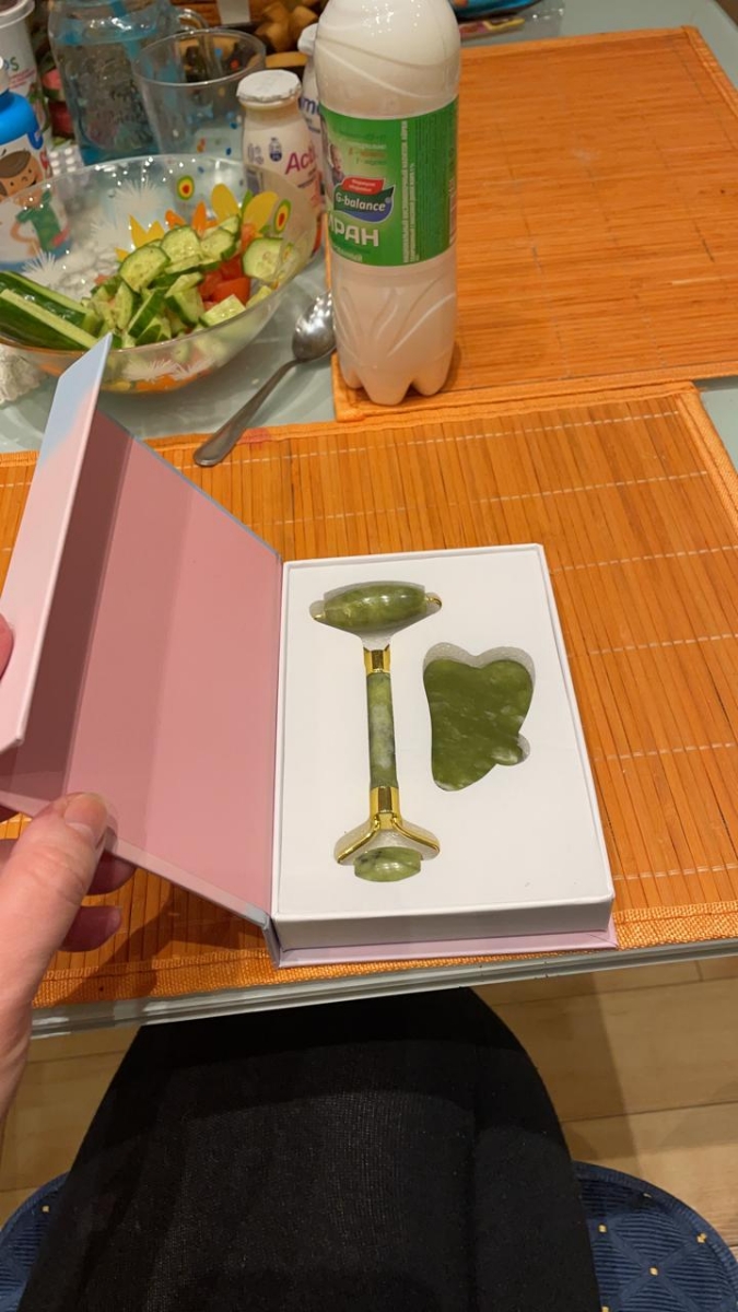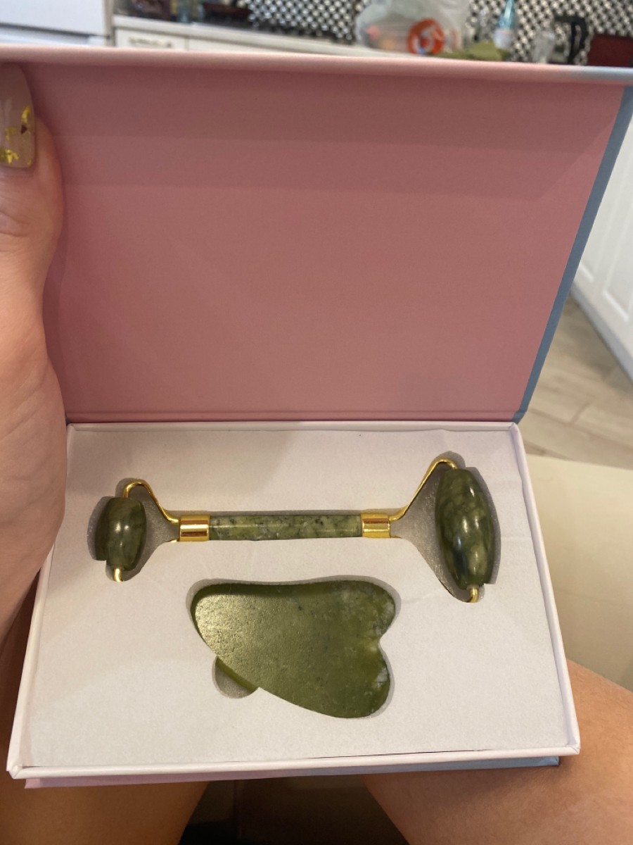BAEFACE Роликовый нефритовый массажер для лица + скребок Гуаша в подарочной упаковке