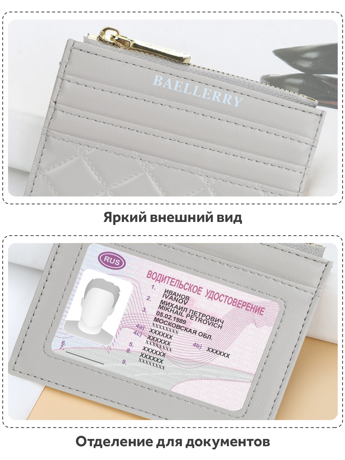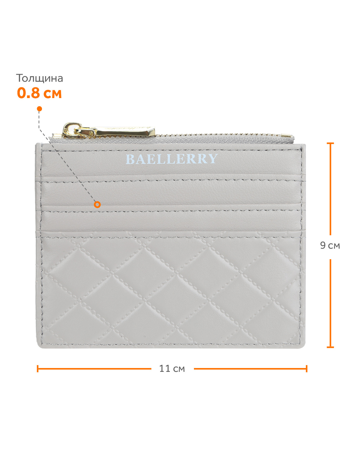 Кредитница кошелек Baellerry стеганая на молнии, визитница, картхолдер, органайзер для карт, серый