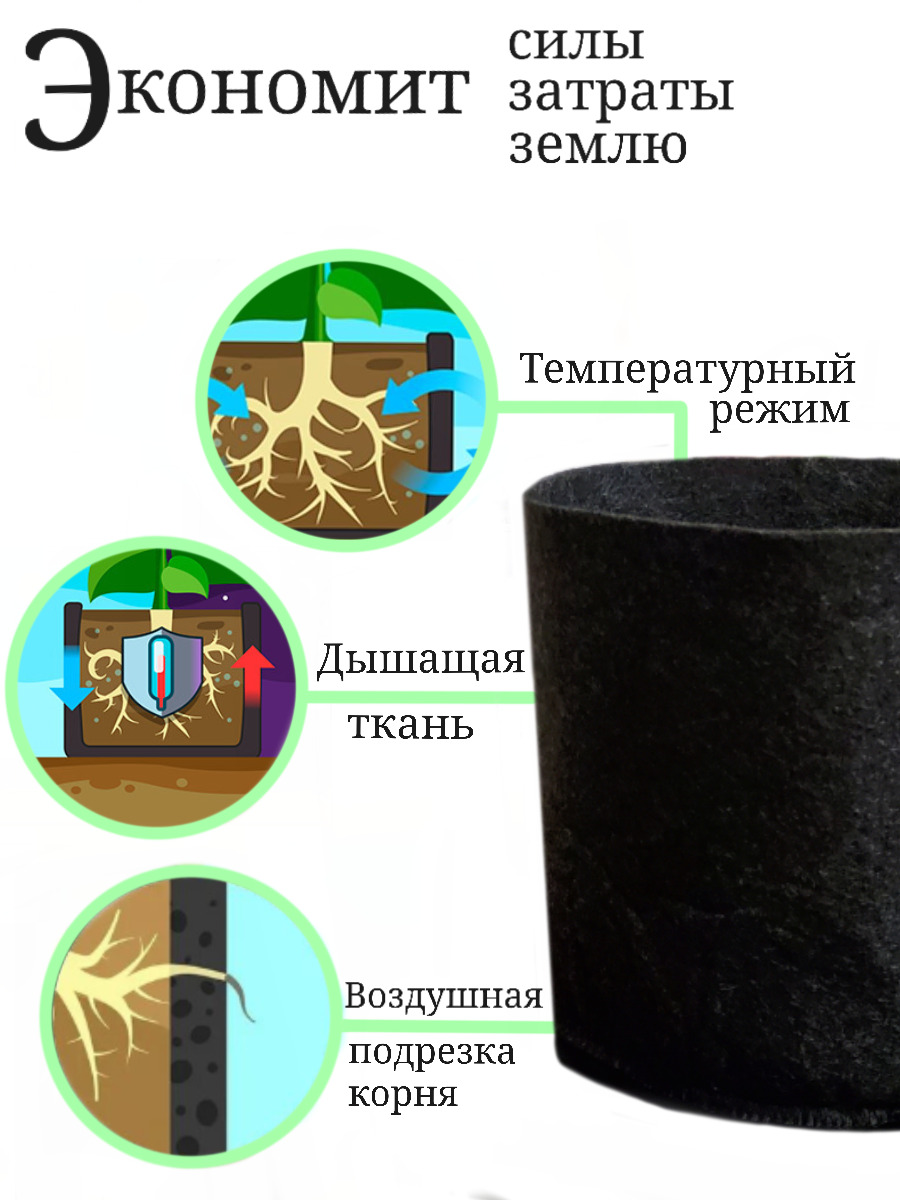 Горшок тканевый (мешок горшок) с ручками BagPot - 15 л 1 шт.