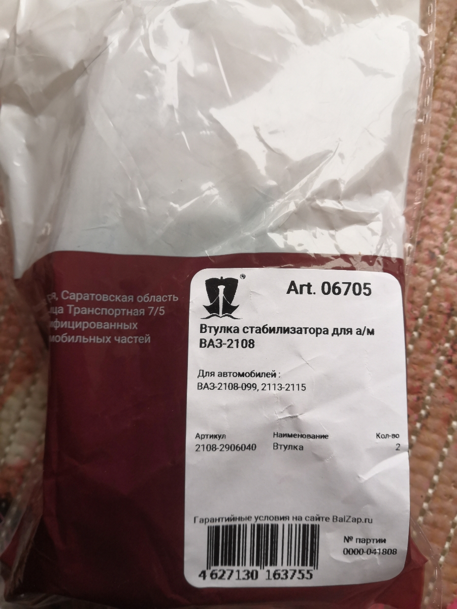 Втулка переднего стабилизатора ВАЗ-2121-21213 (к-т 4шт) "БалаковоЗапчасть" арт. 06708