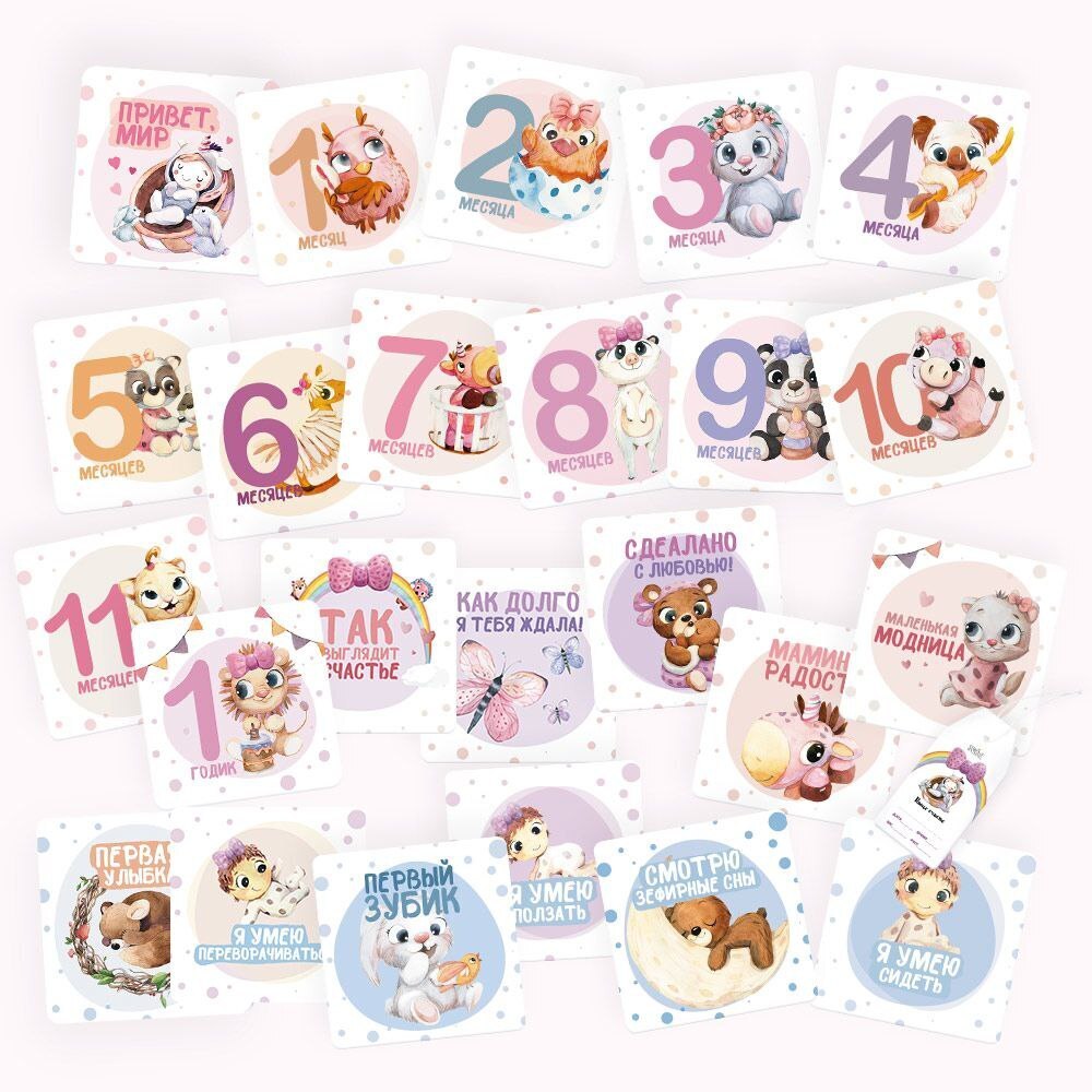 Бамбиник Карточки N1 для фото девочки 0-12 месяцев и первые достижения