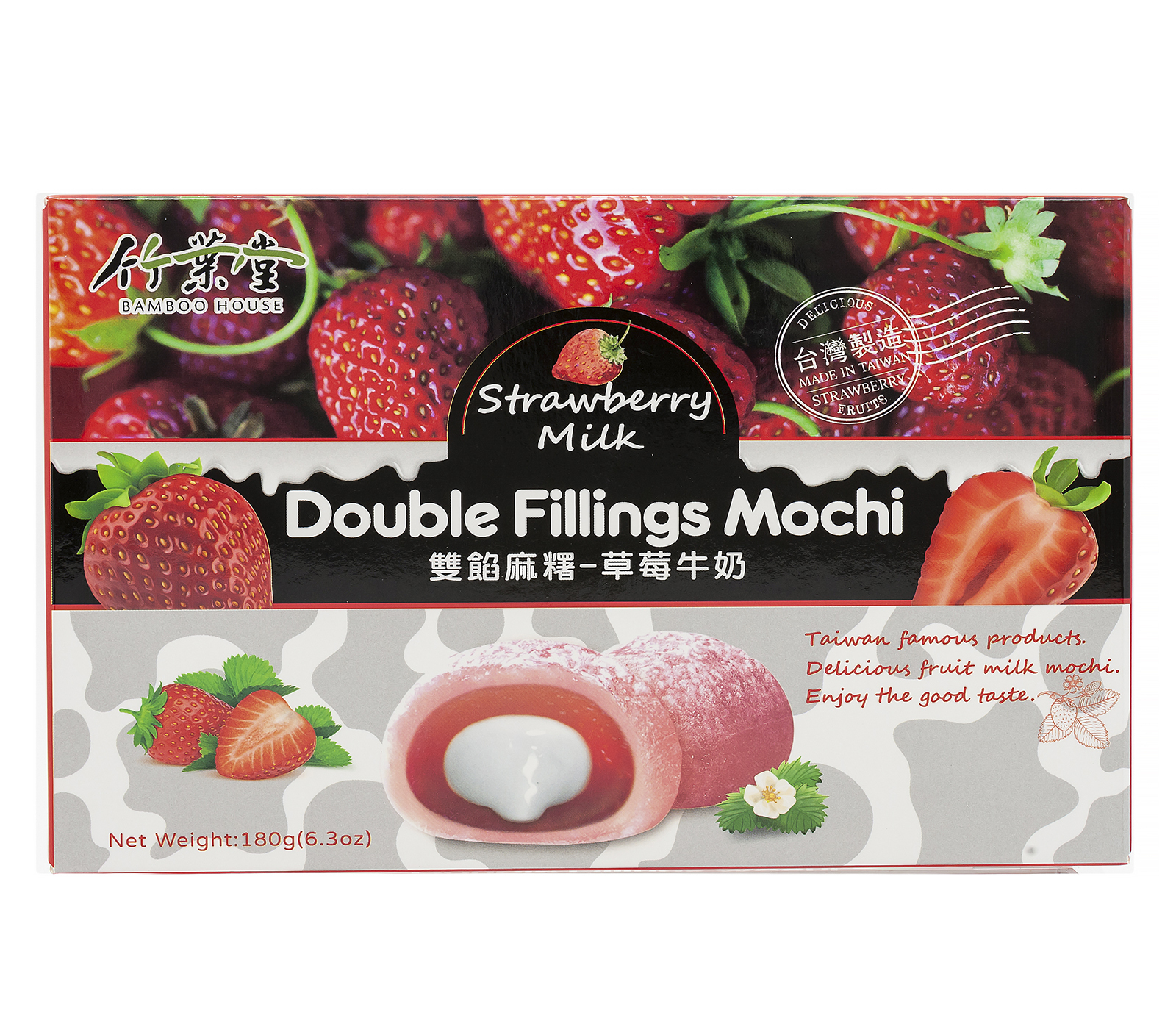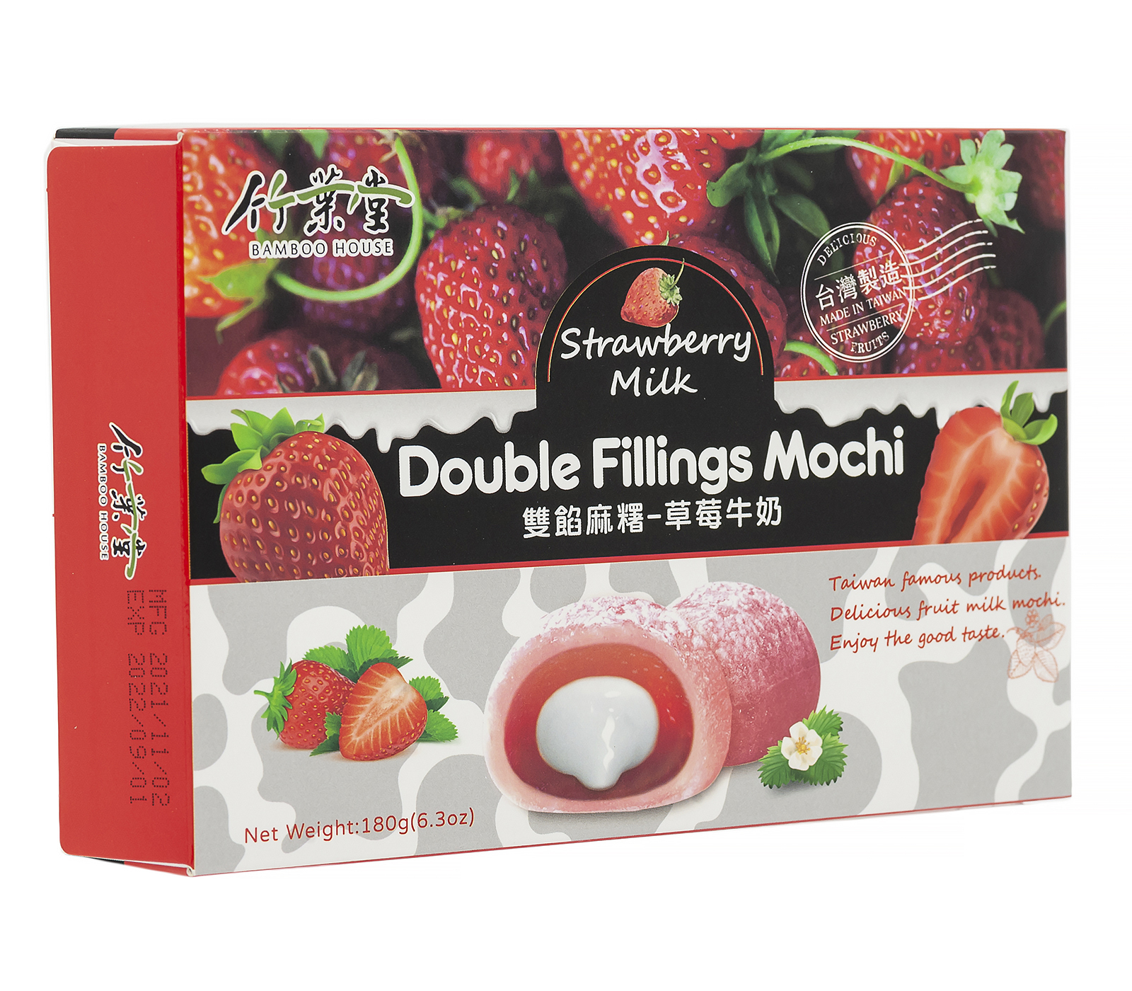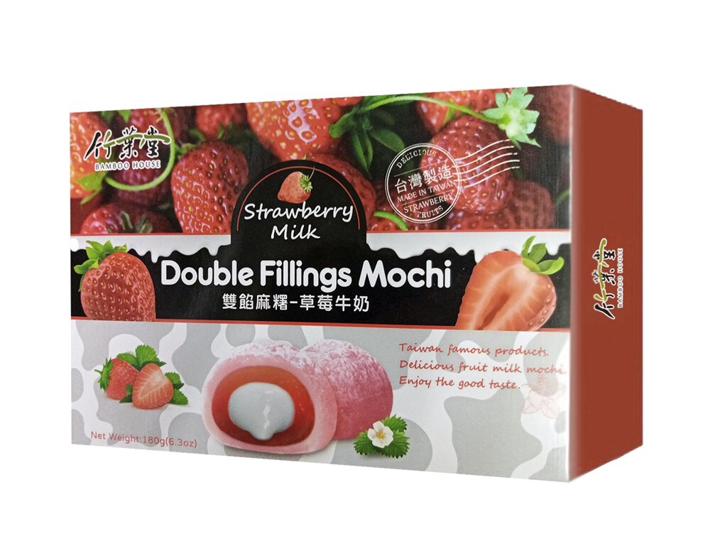 Японское рисовое пироженое Моти Клубника с молоком 180г. DOUBLE FILLINGS MOCHI, Тайвань