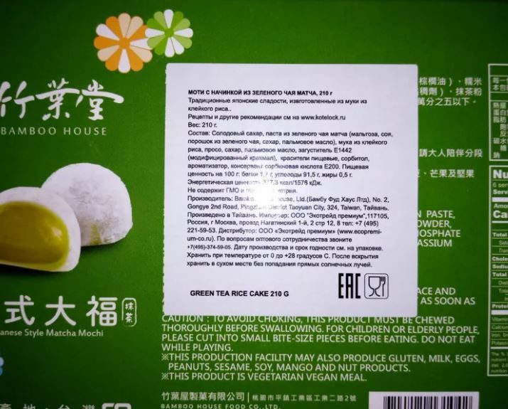Японское рисовое пироженое моти "Матча" 210 гр. Тайвань