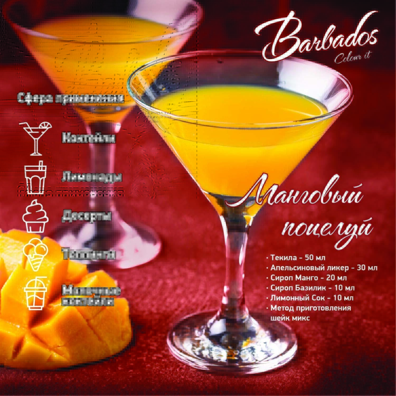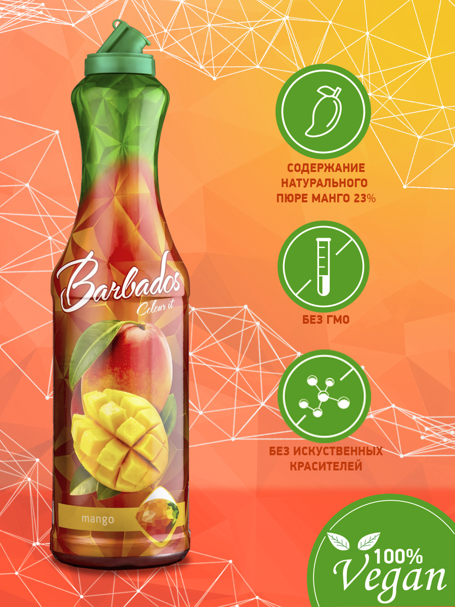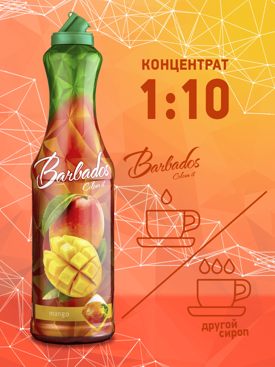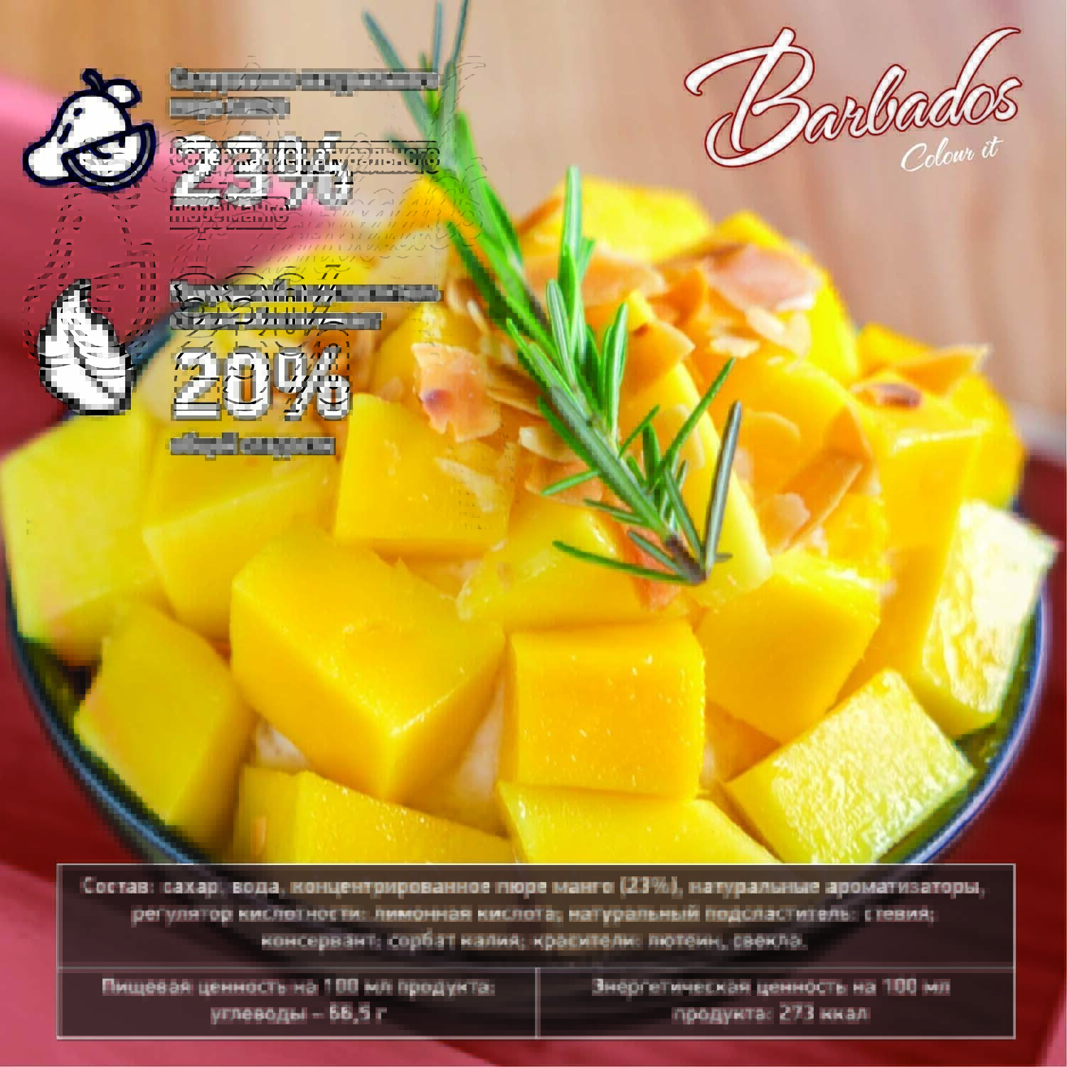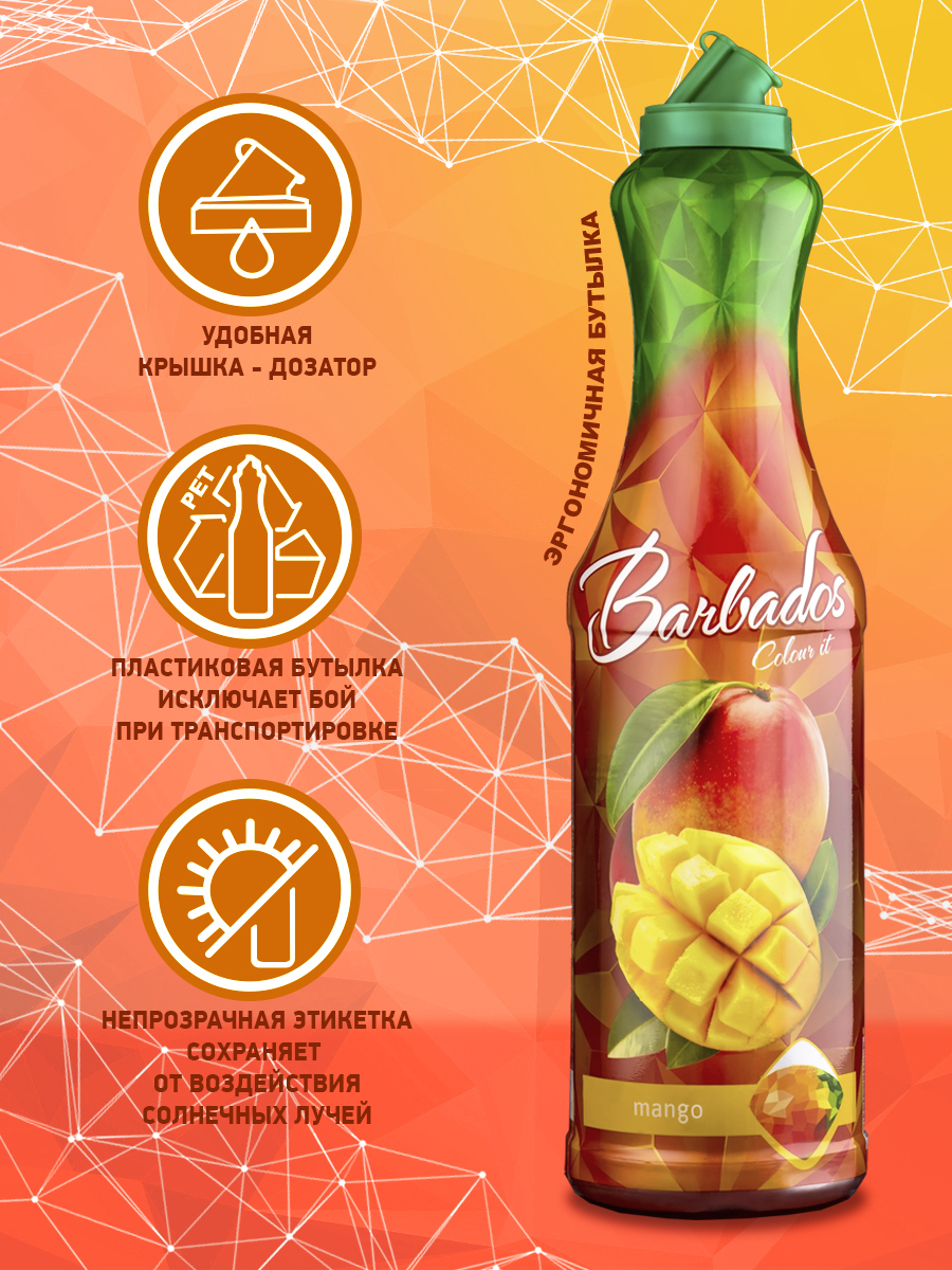 BARBADOS Сироп Манго, натуральный, для коктейлей, лимонадов и мороженого, низкокалорийный, с пюре манго