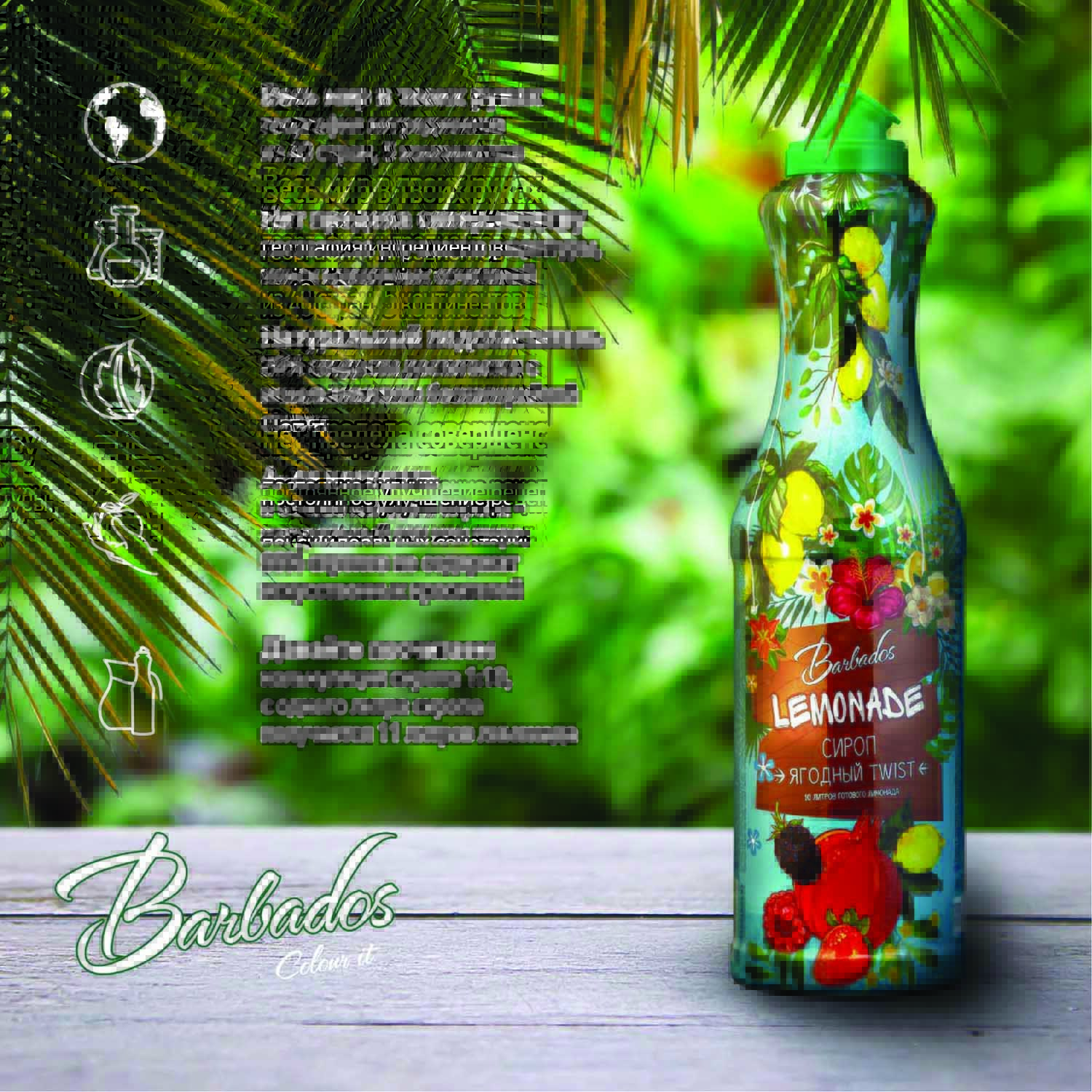 BARBADOS / Ягодный твист / ягодный сироп / сироп для лимонада / сироп для коктейлей / низкокалорийный сироп / для выпечки / 1 литр