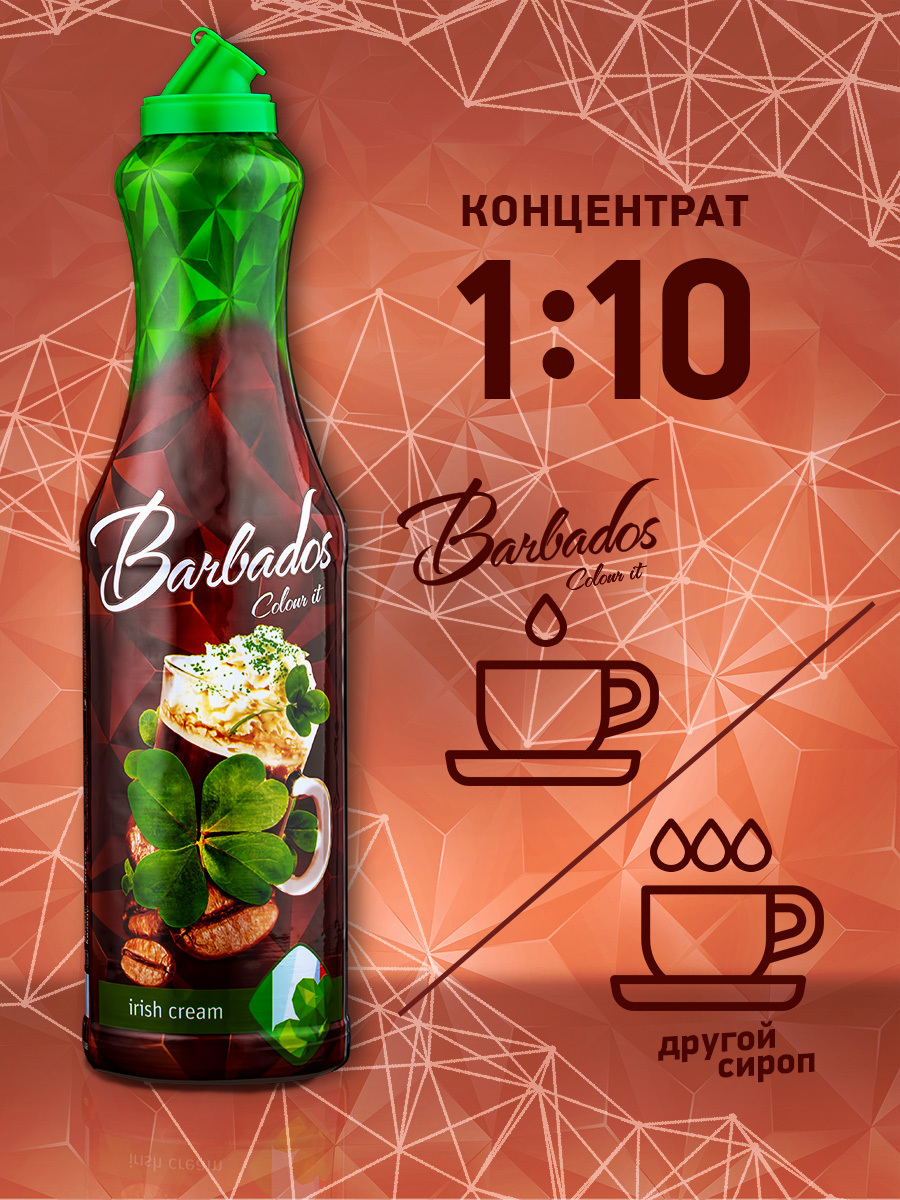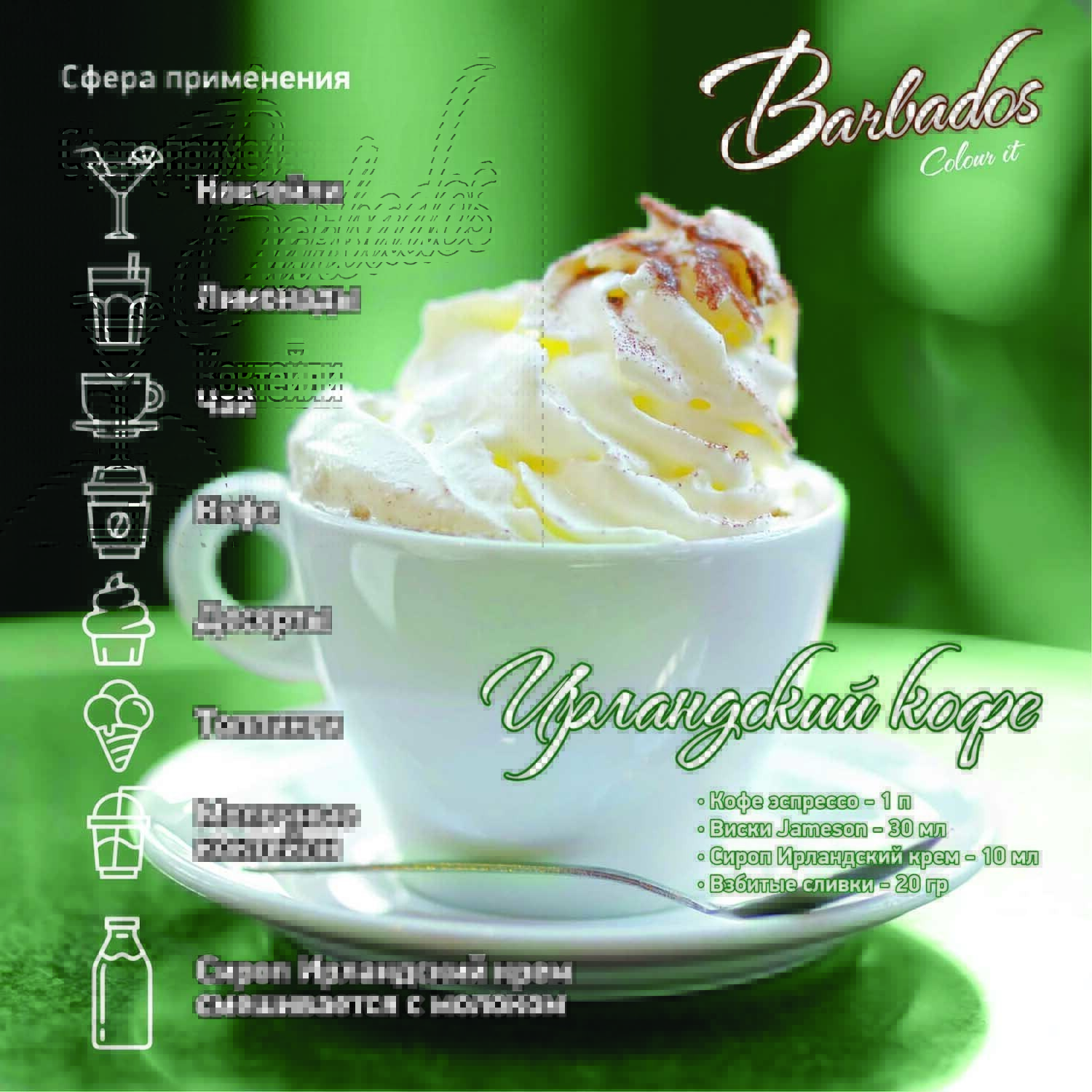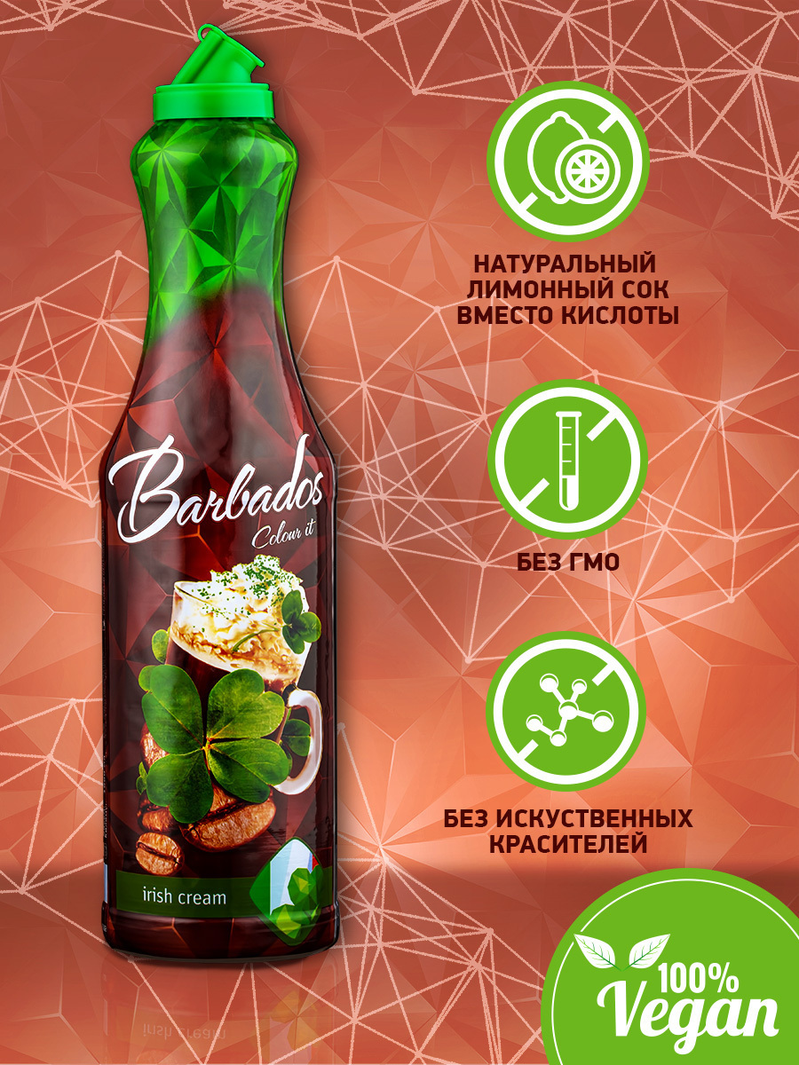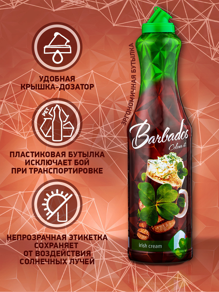 BARBADOS Сироп Ирландский крем, айриш крем для кофе и коктейлей, топпинг для десертов, в подарок, 1 литр