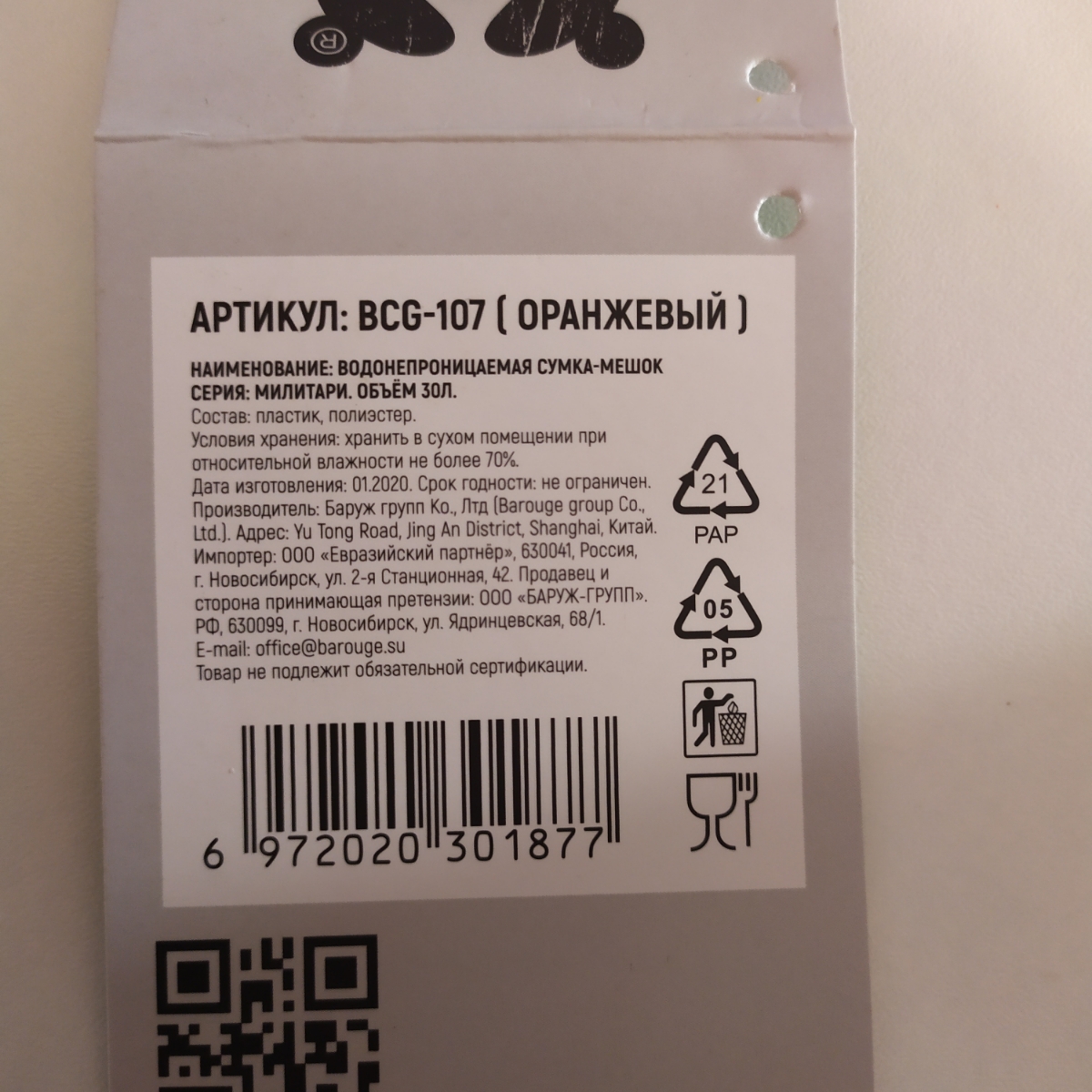 Гермомешок, Герморюкзак Barouge, оранжевый 30л