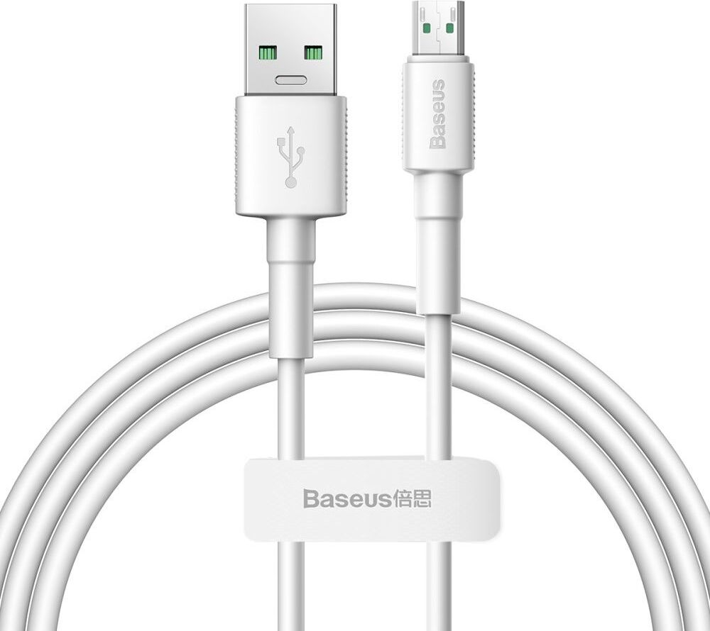 Кабель Baseus Mini USB - Micro USB, 4A, 1 м, белый