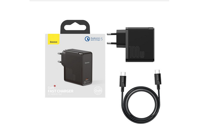 Сетевое зарядное устройство Baseus GaN3 Pro Fast Charger 2C+U 65W + Cable EU (CCGP050101)
